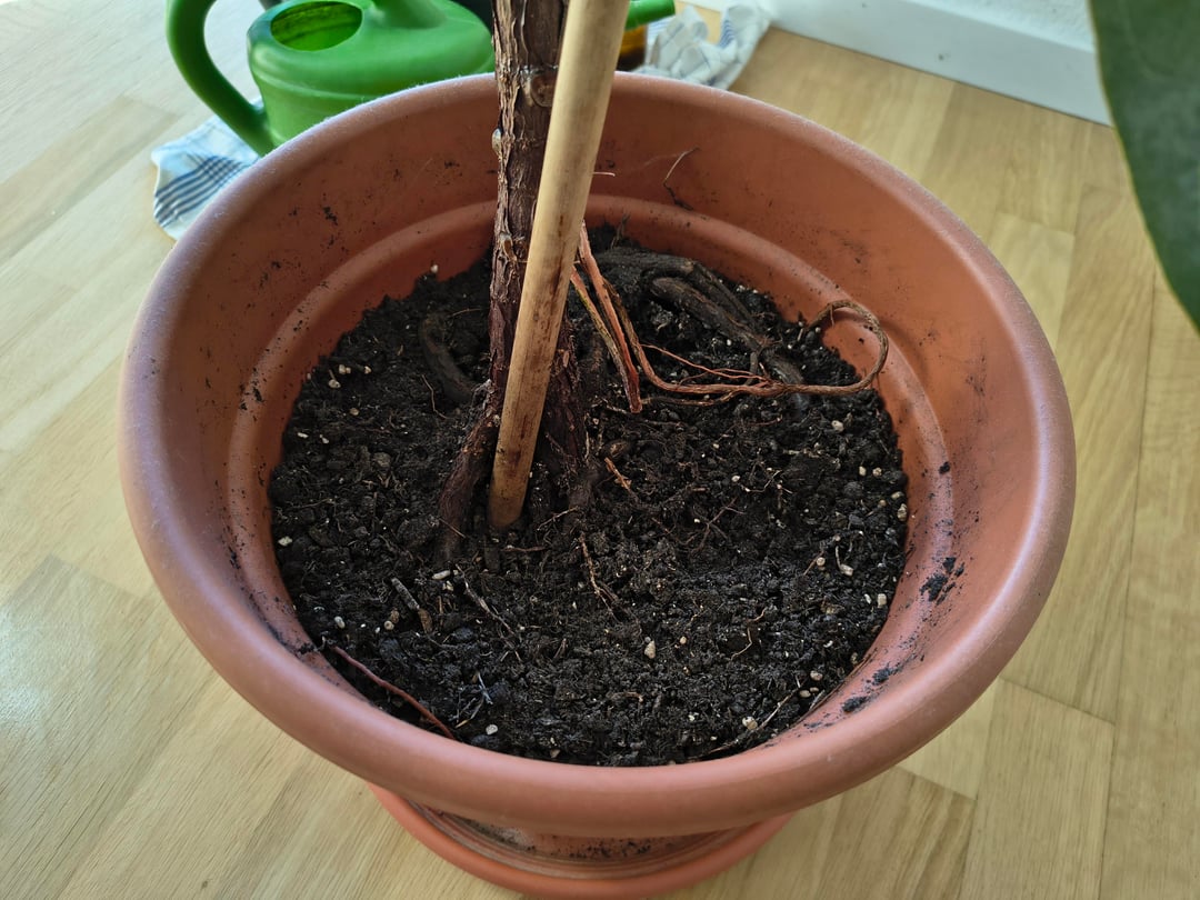 Jetzt habe ich langsam das Problem, dass sie bald ihr Gewicht nicht mehr halten kann, ohne Wandstütze fliegt sie also um. Auch hört sie halt nicht auf zu wachsen und erreicht damit bald die Decke. Ich bin ein großer Anfänger was Pflanzen angeht (wie man vielleicht unschwer erkennen kann) und bin nun etwas überfordert, was ich meiner Geigenfeige Gutes tun kann. Sie sollte wohl dringend nochmal umgetopft werden, die Wurzeln kommen ja auch schon überall heraus, gleichzeitig wird sie ja dann vermutlich auch irgendwann wieder weiter wachsen wollen.