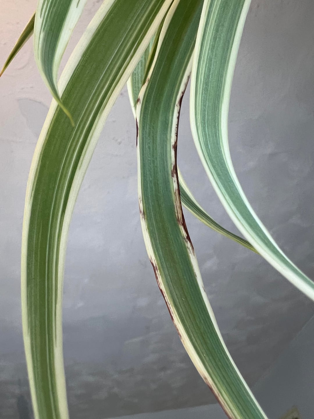 Der größte Teil der Pflanze scheint gesund zu sein, aber die Unterseiten einiger Blätter fangen an, dunkelbraun zu werden, und ich kann nicht herausfinden, warum. Könnte es ein Problem mit der Wasserqualität sein? Ich gieße es alle paar Wochen, wenn es anfängt, blass auszusehen, aber normalerweise verwende ich Leitungswasser