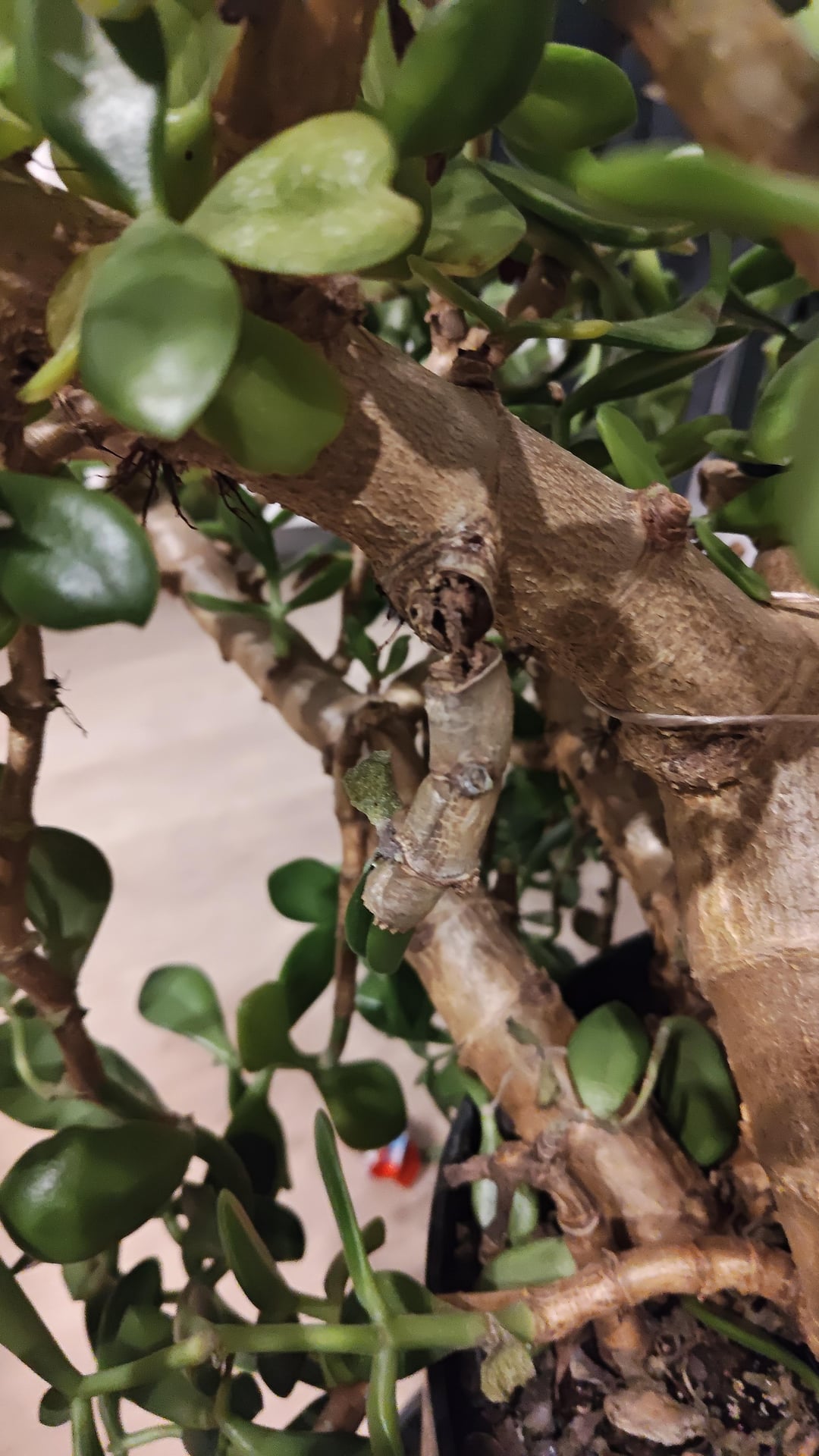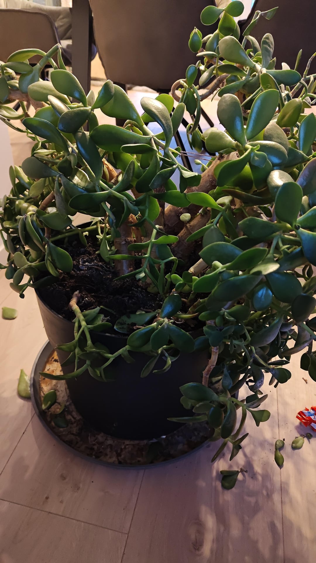 Hallo zusammen! Das hier ist der Geldbaum, der schon seit langem in der Familie meiner Frau wächst. Wir haben ihn bereits seit 4 Jahren bei uns, bisher ohne Probleme. Mittlerweile macht er mir jedoch große Sorgen, da man immer wieder das abfallen der schweren Blätter auf den Laminat hören kann. Außerdem scheinen vereinzelte Triebe von der Spitze aus zu faulen, was sich vor allem im inneren der äste stark bemerkbar macht.