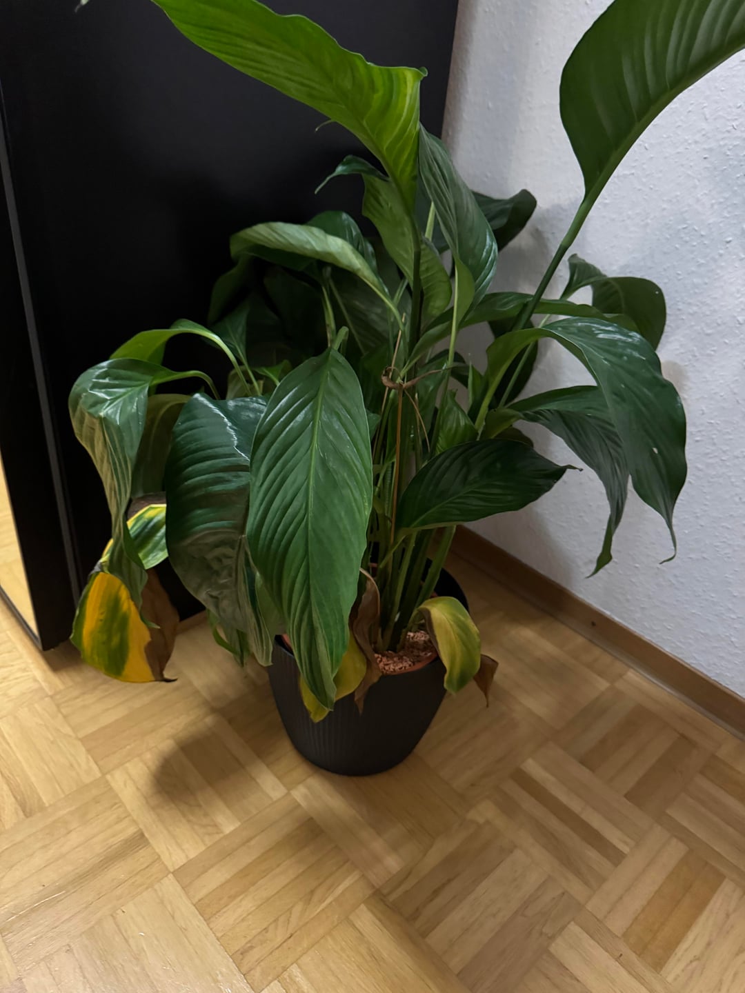 Hallo zusammen, hab mir vor ein paar Monaten eine Einblatt zugelegt. Die Blüten waren relativ schnell verwelkt und nach ein paar Wochen, hat sie leider angefangen die Blätter braun werden zu lassen. Zu dem Zeitpunkt habe ich festgestellt, dass die Erde dauerfeucht war.