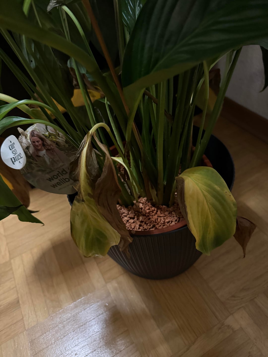 Daher umgetopft in Granulat. Allerdings wird ein Teil der Blätter immer bräuner und hängt.