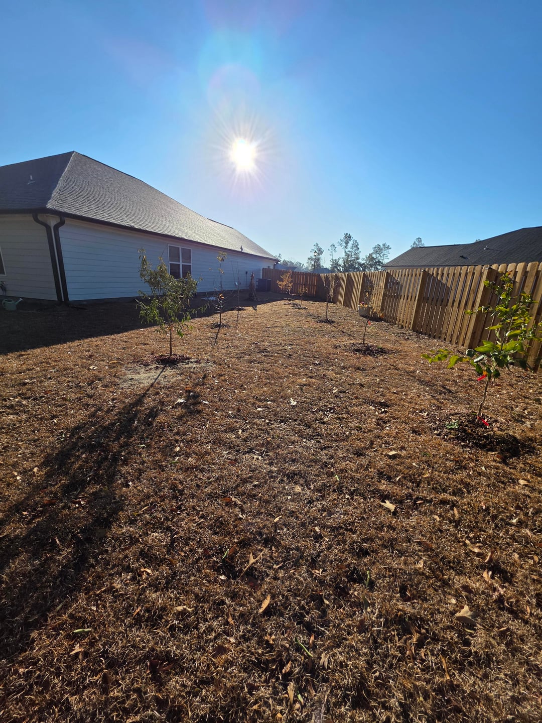 Ich habe sie in einem Abstand von etwa 10–11 Fuß in einer Reihe angeordnet, und der Abstand über die Reihe beträgt etwa 8 oder mehr Fuß.