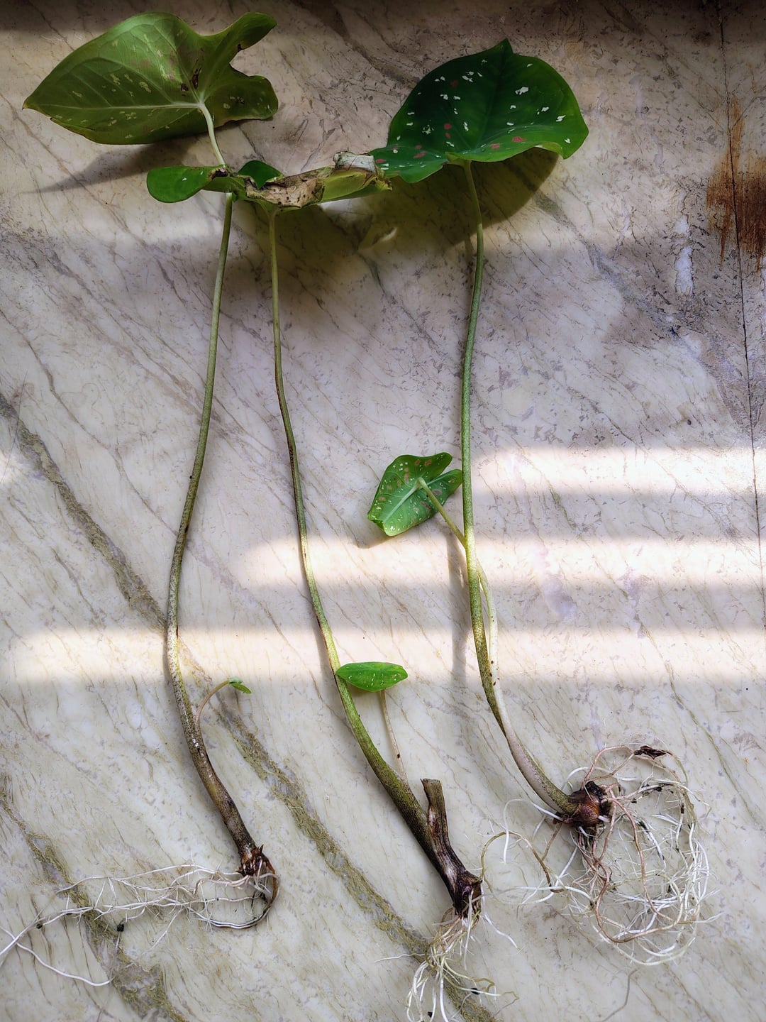 Zeit für Geschichten: Vor etwas weniger als drei Wochen hatte ich in diesem Sub gepostet und um Hilfe gebeten, nachdem jemand versucht hatte, eine meiner Kaladien zu stehlen und ein paar Stiele aus dem Topf gerissen hatte.