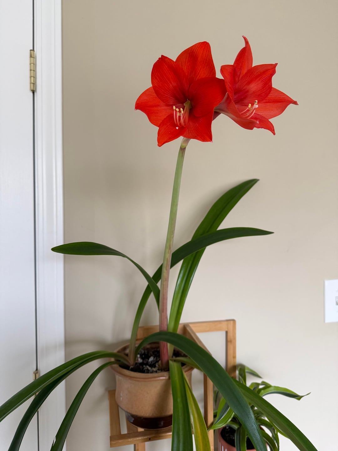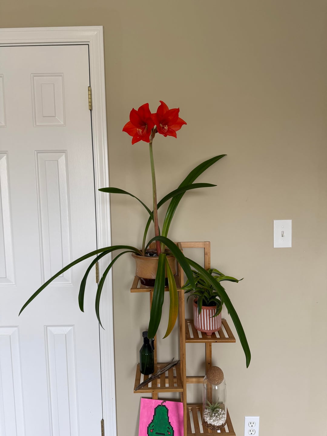 Mein Großvater schenkte mir vor seinem Tod ein paar Blumenzwiebeln und ich hatte Angst, ich würde sie töten. Ich habe den Topf nie gewechselt und ihnen nur einmal neue Erde gegeben. Seitdem bin ich viel umgezogen und konnte ihm nie eine dauerhafte Umgebung geben, bis ich im Dezember mein eigenes Haus kaufte. Ich stellte es zusammen mit ein paar anderen in mein Gästezimmer und goss es, wenn es fehlte.