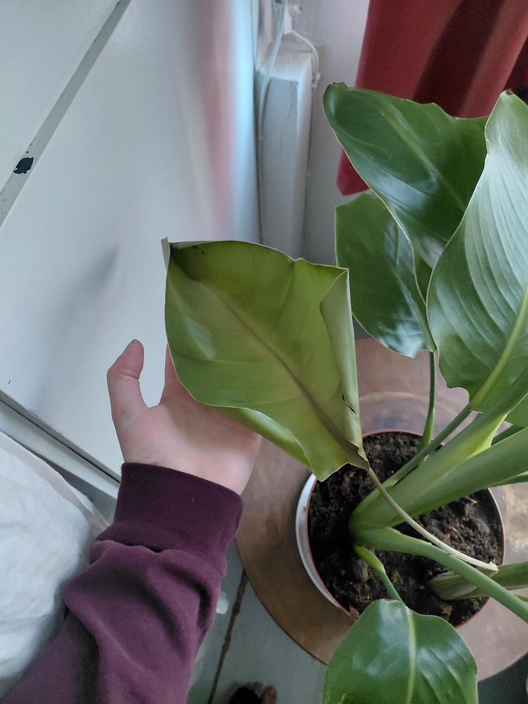 Bitte hilf mir hier weiter! In den ersten paar Monaten, nachdem ich sie bekommen habe, hat sie sich unglaublich gut geschlagen, aber Mitte Dezember hat sie an den Spitzen immer wieder gebräunt und jetzt hat sich dieses Blatt gelblich verfärbt? Ich habe sie näher ans Fenster gestellt, da es im Winter kaum Sonnenlicht gibt, aber keine Besserung. Sie bekommt die Duschbehandlung, wenn ihr Boden trocken ist.