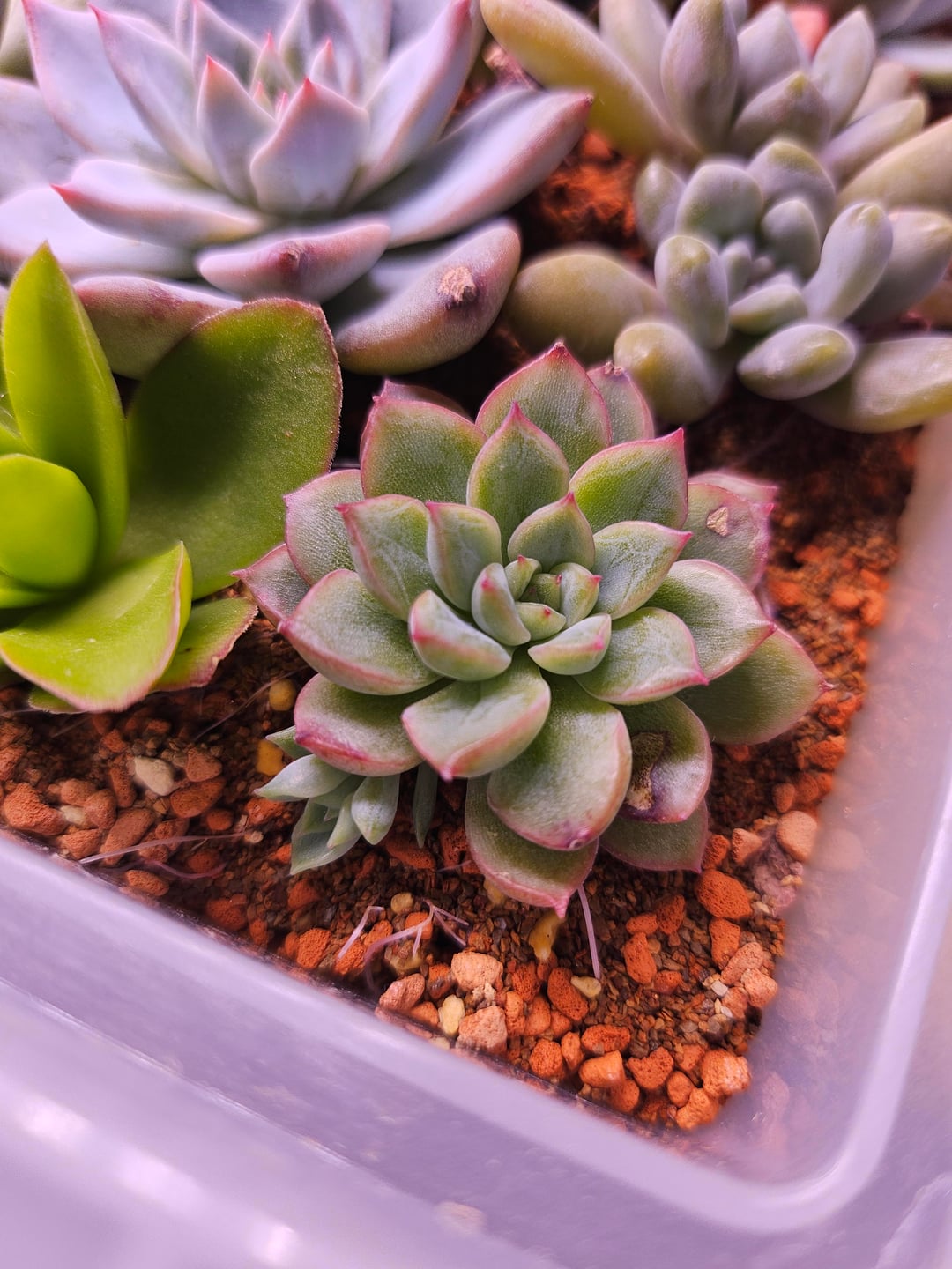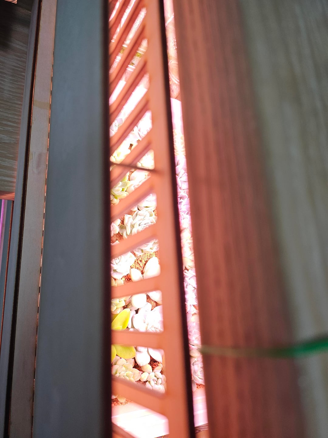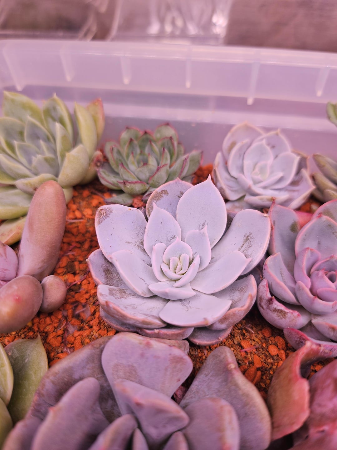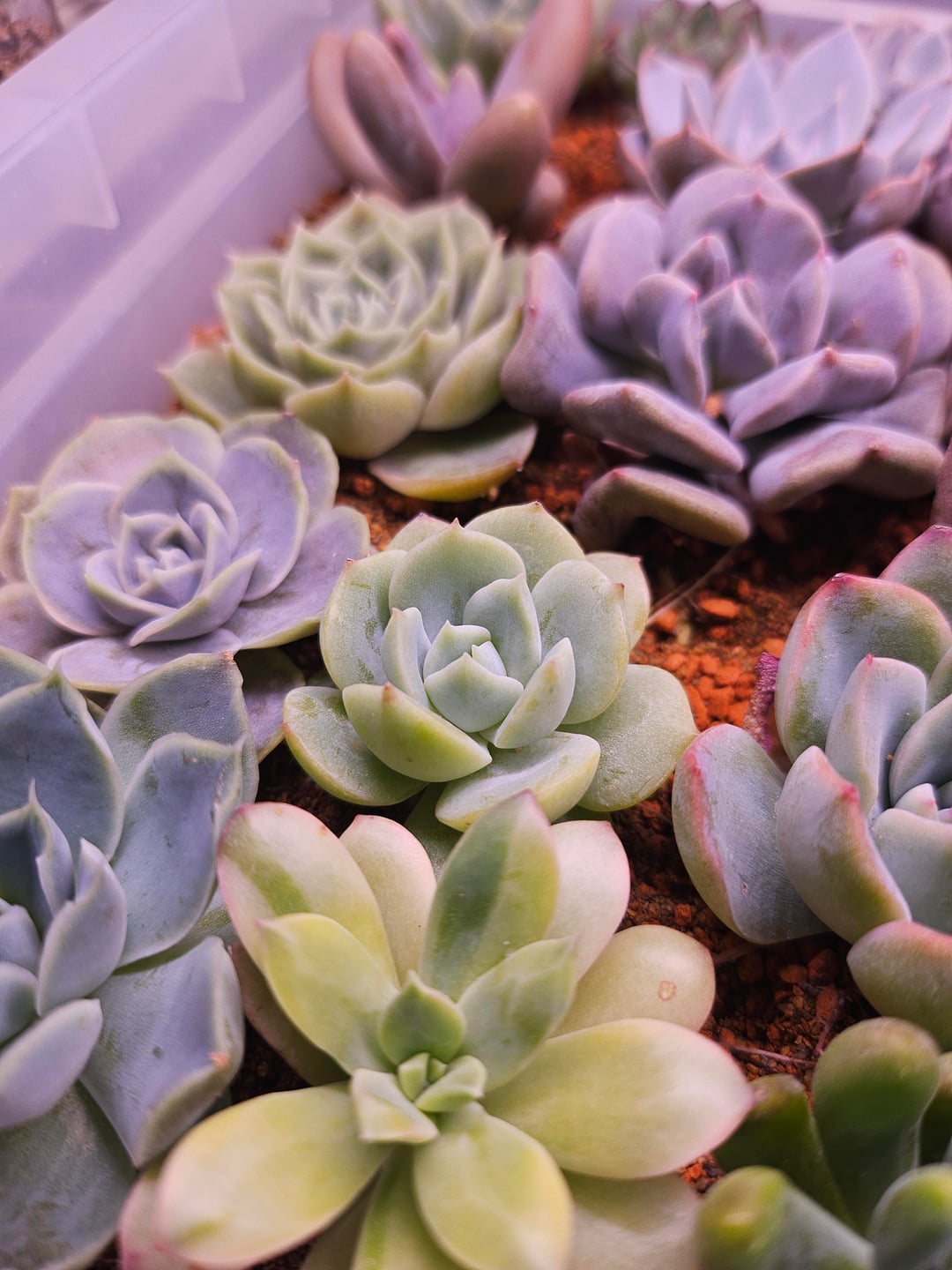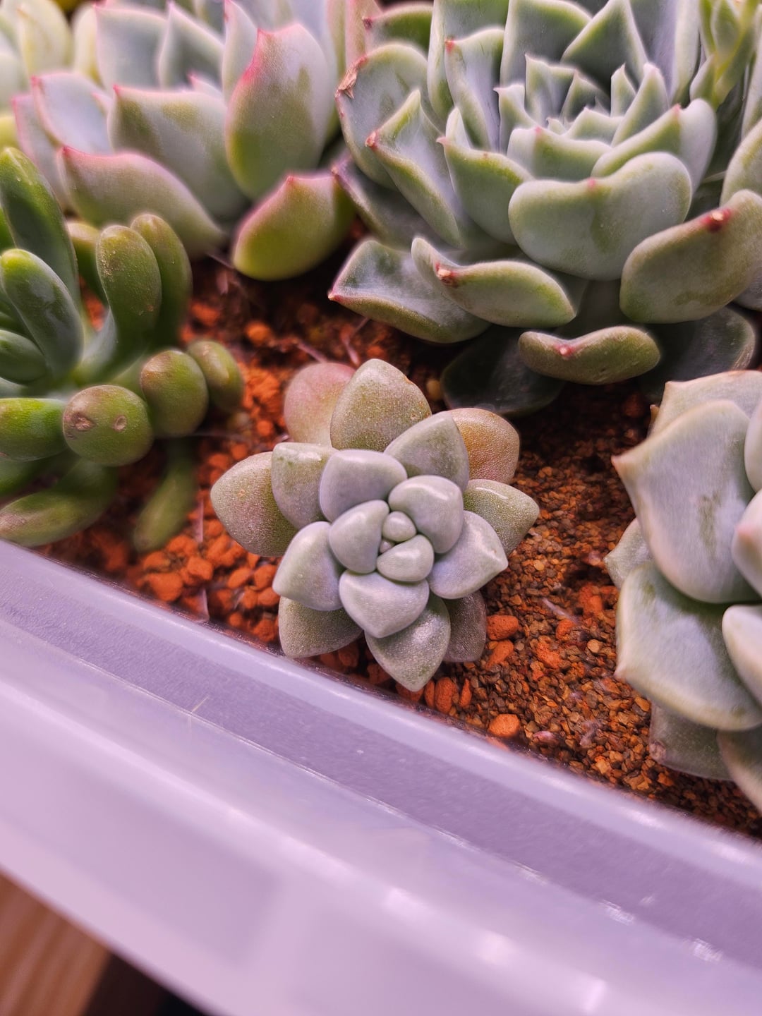 Normalerweise führen die Luftfeuchtigkeit im Freien und der tägliche Regen dazu, dass sie sofort verfaulen, und bei der oft prallen Sonne werden die Wurzeln bedampft. Deshalb muss ich es drinnen anbauen. Der Winter ist so deprimierend und düster, leblos und ich habe eine kleine Wachstumskammer eingerichtet, um die Sukkulenten zu züchten. Es gibt ein Licht, einen Ventilator und Reflektoren. Ich habe es so gestaltet, dass es perfekt in das Bücherregal passt und eine gute Belüftung bietet. Es gibt eine Sichtöffnung mit UV-Filterglas, da das Growlight etwas UV enthält. fast wie ein Raumschiffgefühl. Gerne können Sie auch Ihre Sukkulenten teilen!