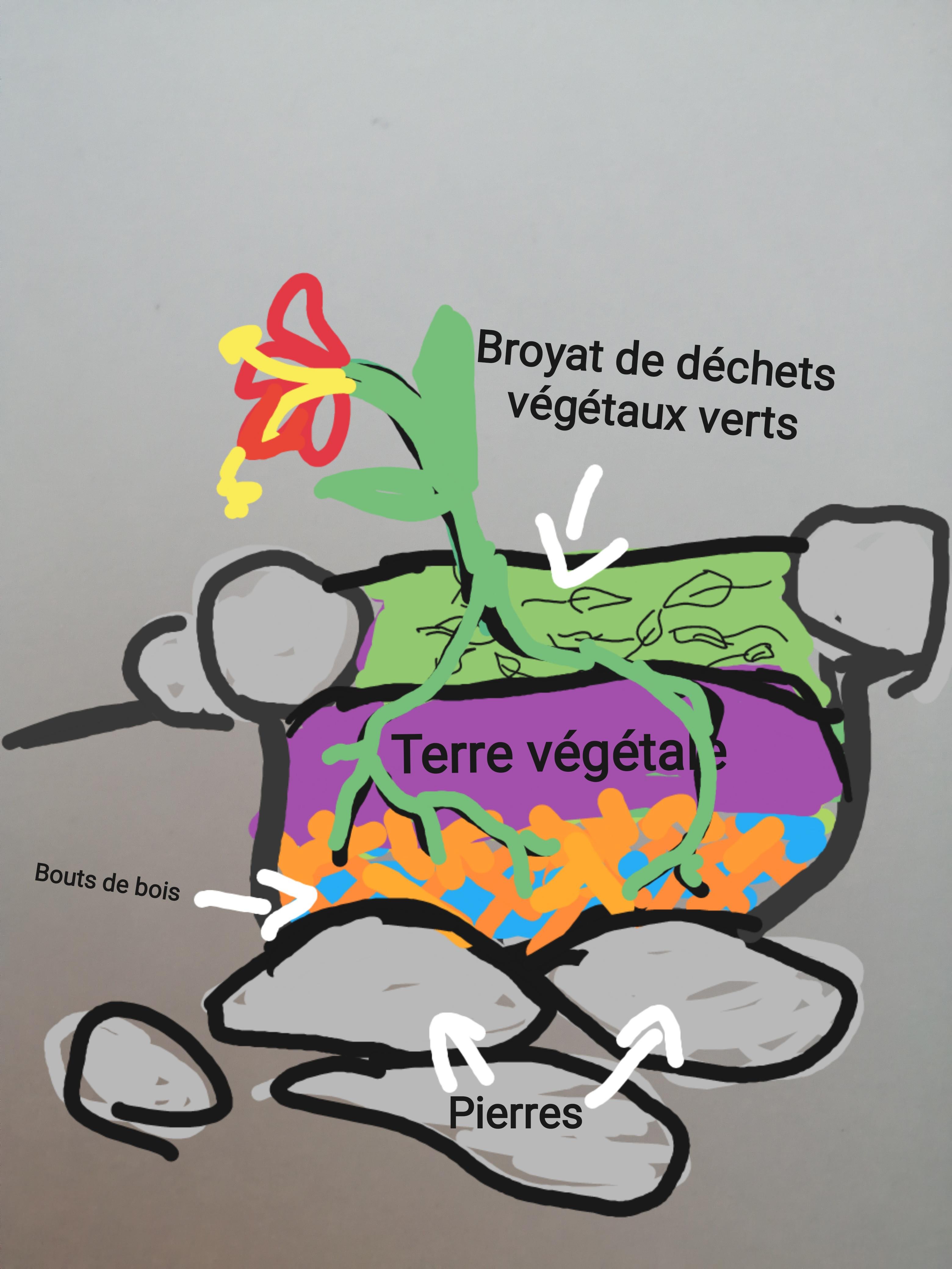 J’ai jamais vu avec les pierres, mais ça ressemble un peu au “Hugelkultur”, et effectivement un peu aux mille autres variantes de “balance de la matière végétale sur ton terrain”. La “mini nappe phréatique” me semble une mauvaise idée à moins d’habiter quelque part d’hyper sec. Avec le temps qu’on a eu là mon jardin ressemble déjà à une nappe phréatique sans avoir besoin de pierres…