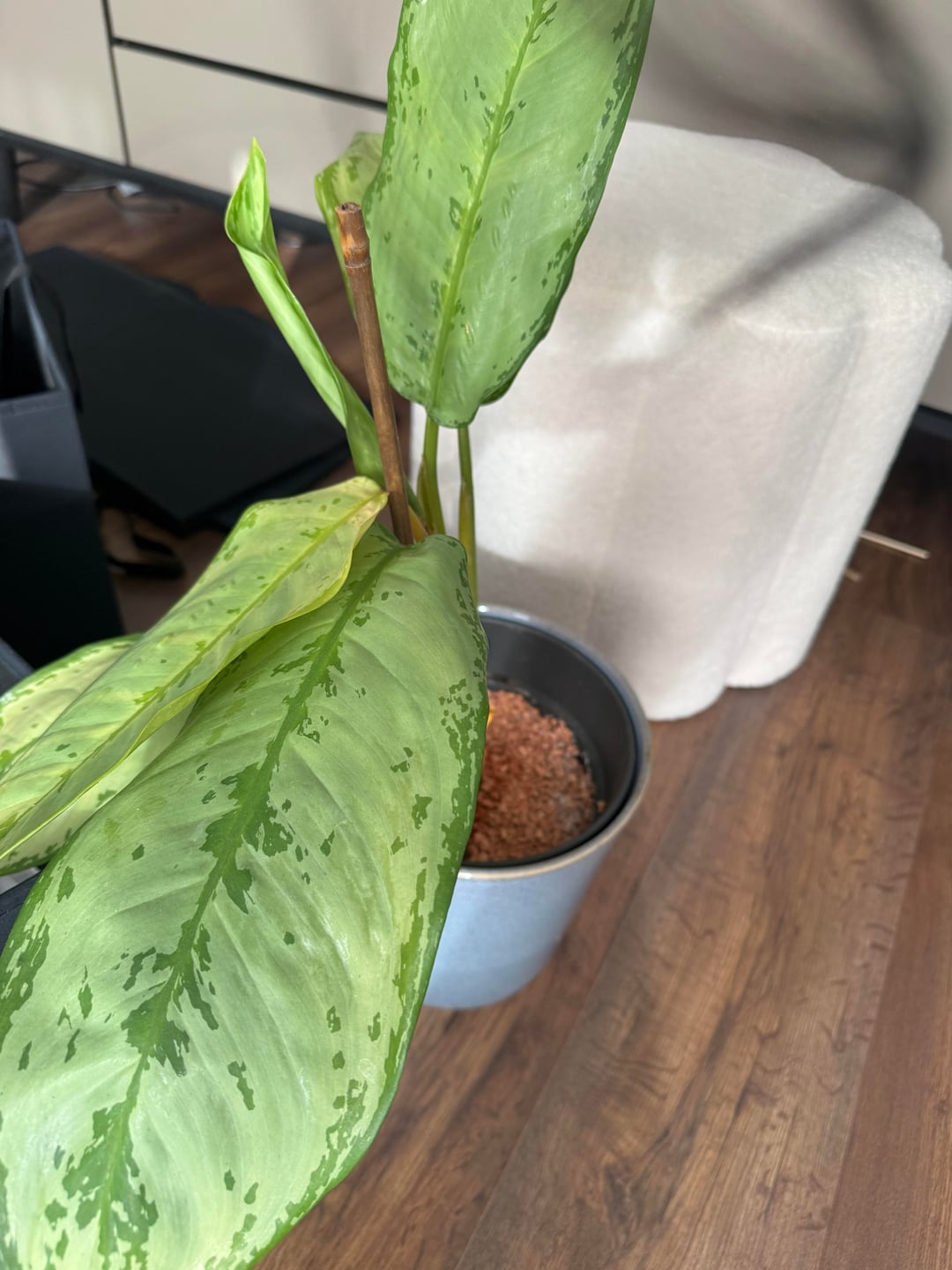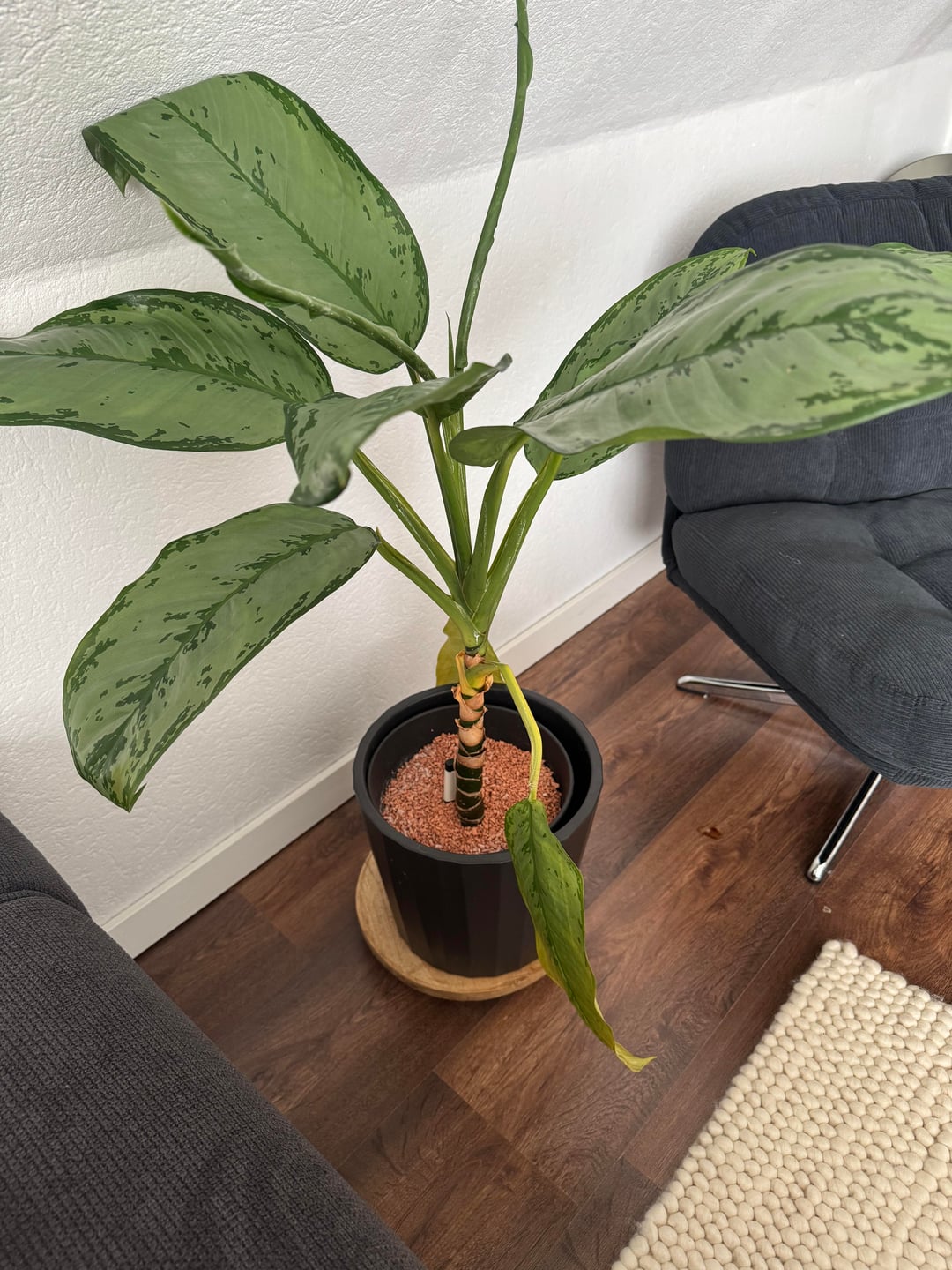 Ich hab diese Pflanze (ich glaube eine aglaonema) schon so 2-3 Jahre aber jetzt macht sie plötzlich schlapp, die unteren blätter werden immer gelb und hängen weshalb ich sie dann abschneide… dadurch wird der stamm unten immer länger…
