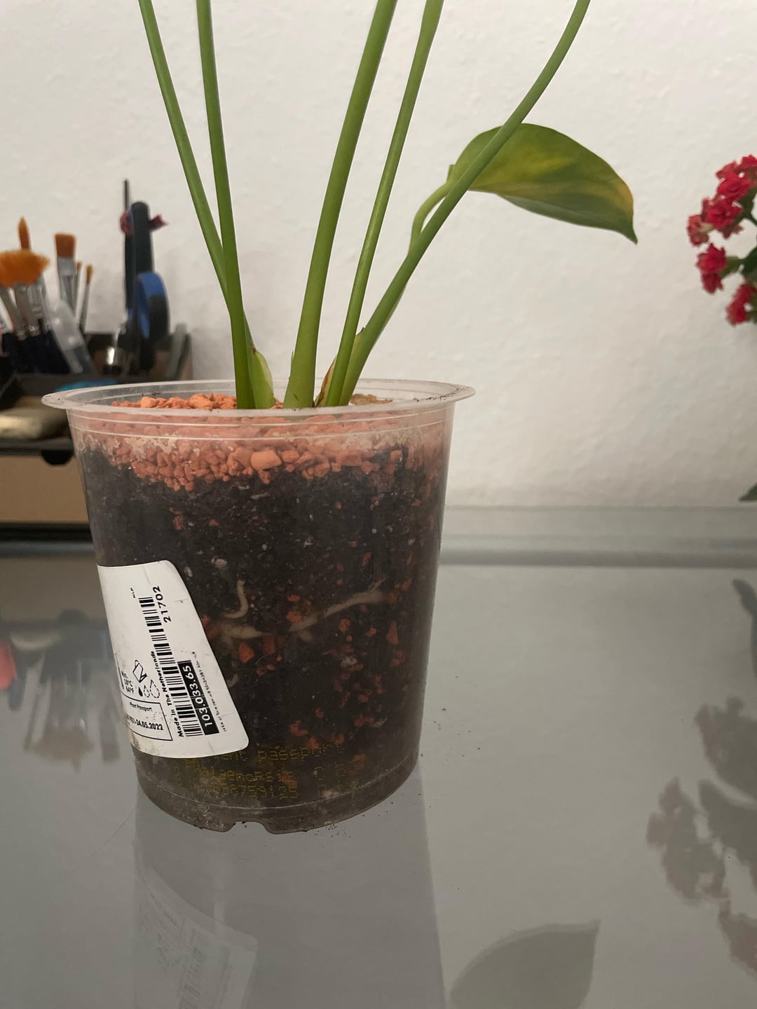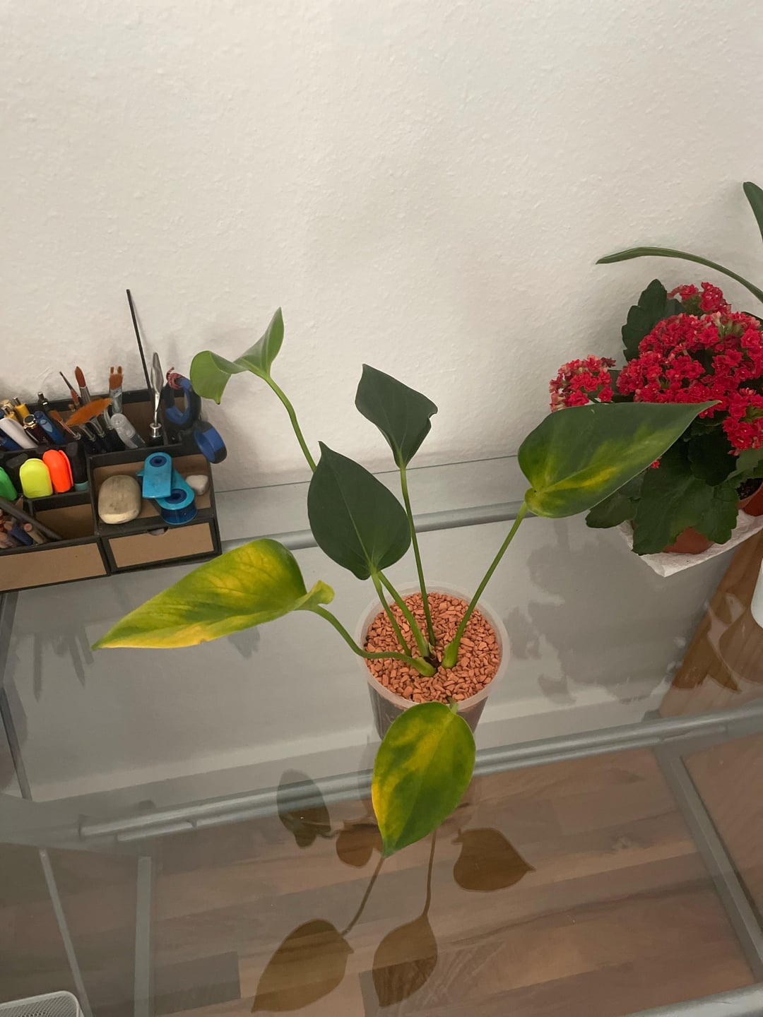 Ich hab diese Pflanze vor ca 1 Monat gerettet. Damals hatte sie Wurzelfäule, hab aber alles weggeschnitten und sie umgetopft.