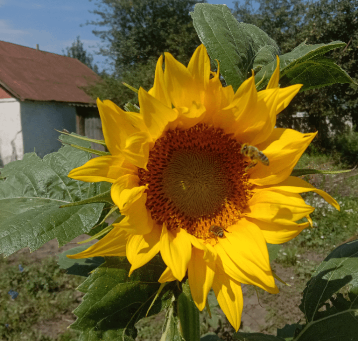 Ich liebe Sonnenblumen in meinem Garten und Bienen lieben sie auch)