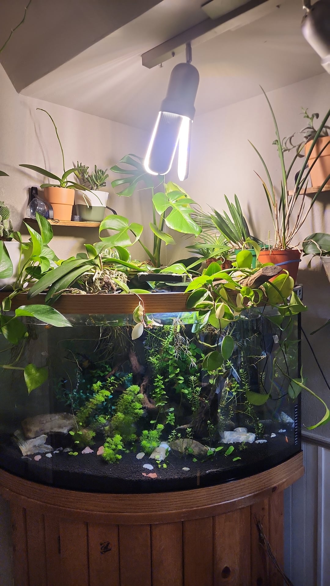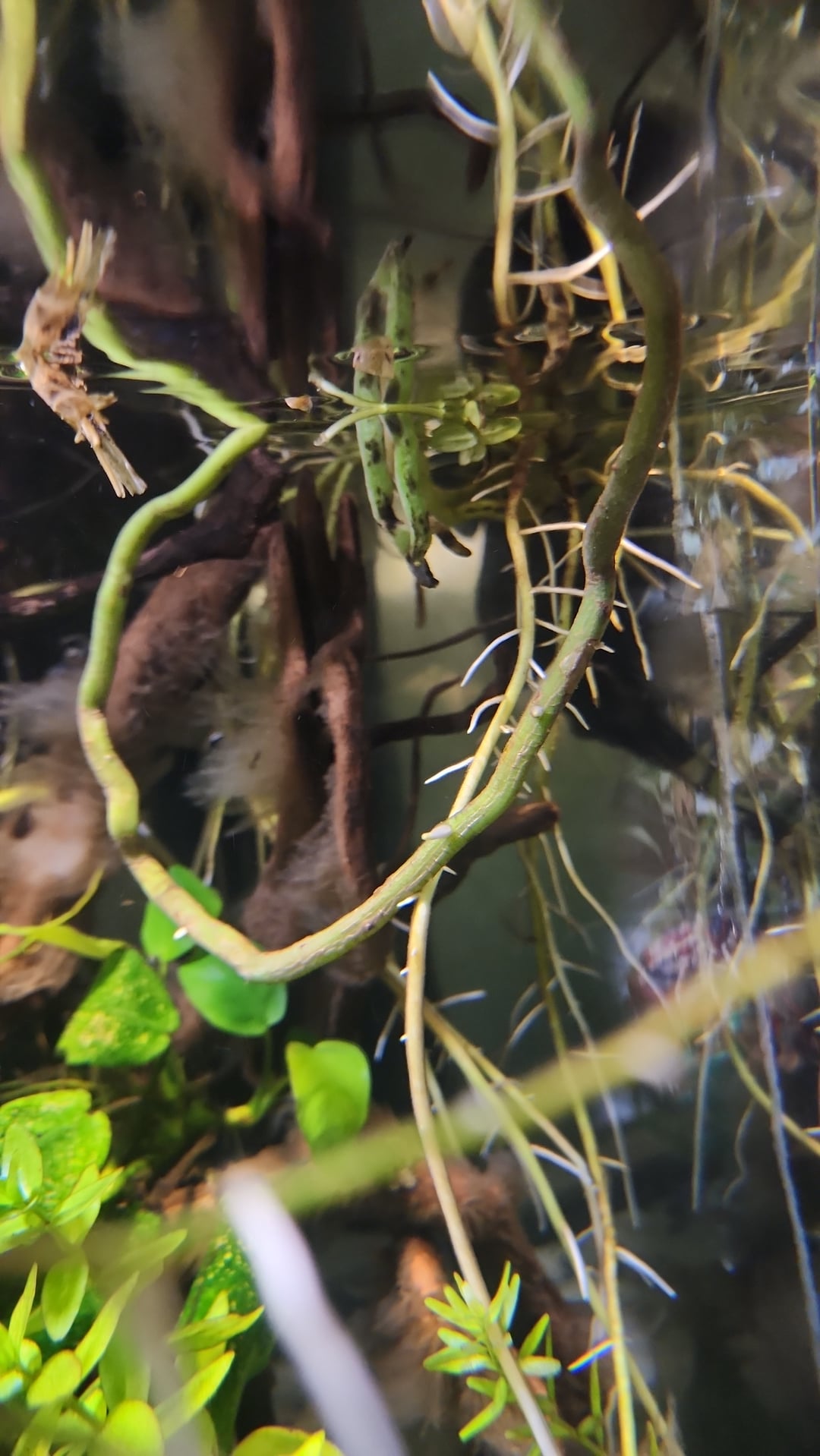 Ich habe es vor etwa einem Monat in mein Aquarium gesetzt und es hatte kaum Wurzeln und nur alte Blätter, keine Anzeichen von neuem Wachstum. Jetzt hat es den Aquaboden am Boden des Aquariums (75 Gallonen) erreicht und gerade ein brandneues Blatt gebildet. Seit ich das Blatt vor etwa drei Tagen zum ersten Mal gesehen habe, ist es bereits gewachsen und hat begonnen, sich zu öffnen. Alle gezeigten Wurzeln stammen nur von der 1 Monstera. Ich frage mich nur, ob ich meinem Aquarium mehr Licht oder Nährstoffdünger geben sollte. Oder einfach so lassen wie es ist?