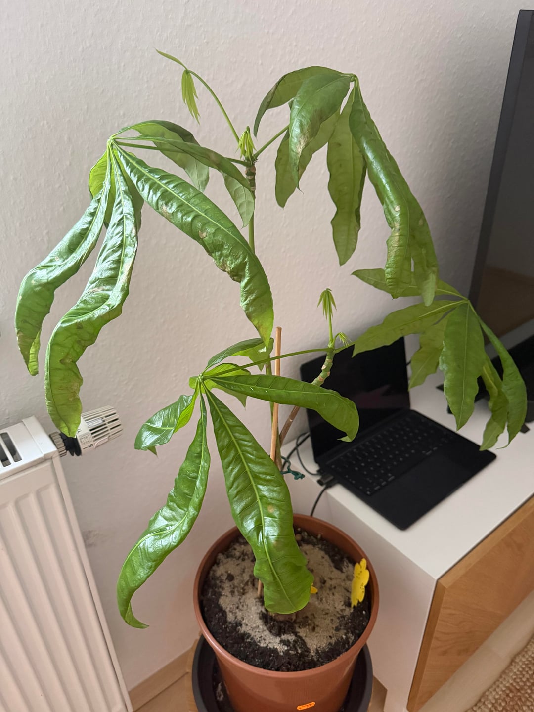 Seit ein paar Wochen fangen sich die Blätter an unserer Pflanze an zu verändern. Leider bin ich absoluter Laie.