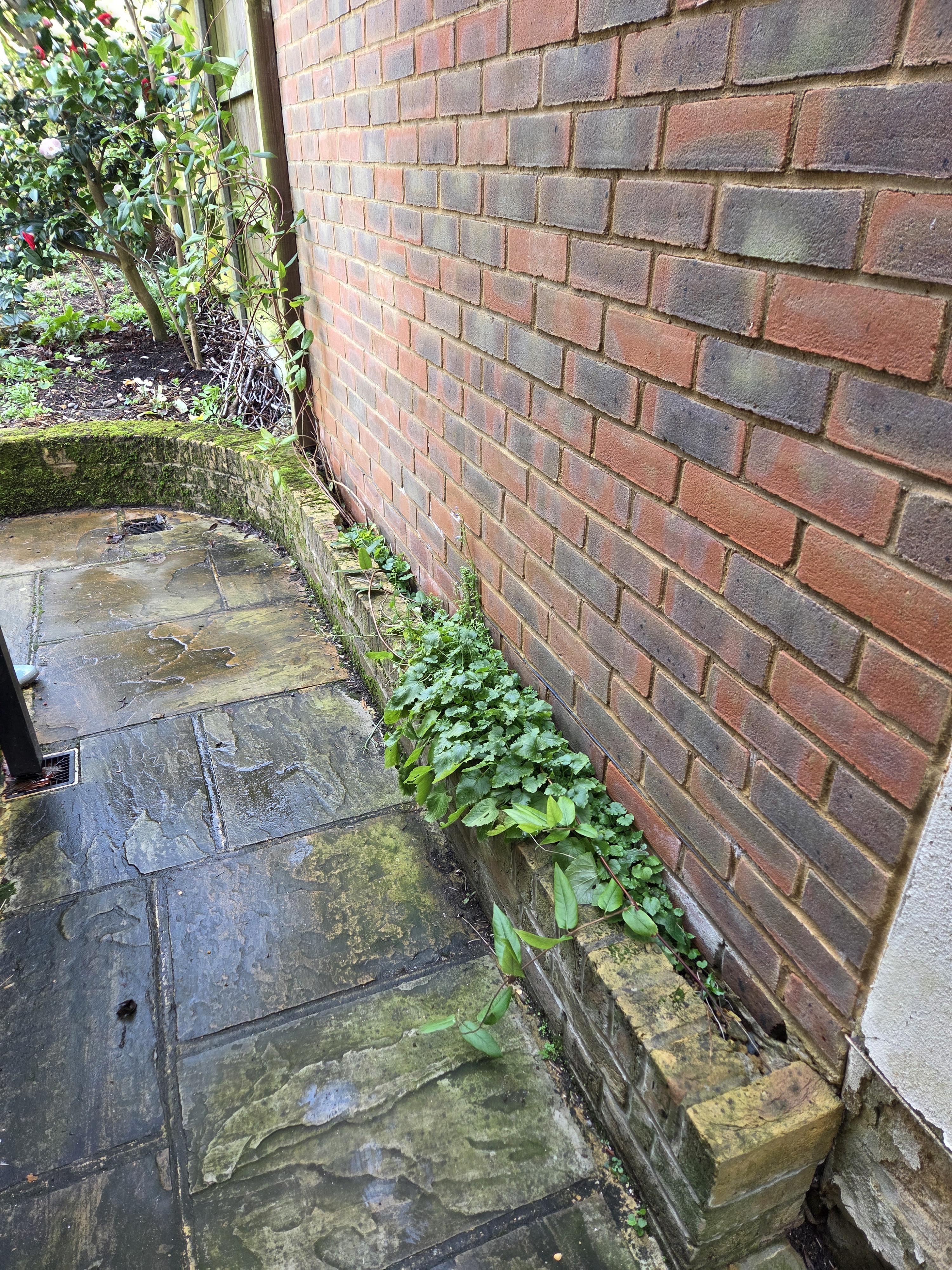 Suchen Sie bitte nach kreativen Ideen! Ich habe diese 4" breiter Streifen neben dem Nachbaranbau. Ich kann es nicht herausnehmen, ohne die halbe Terrasse neu zu gestalten; Es befindet sich auf der Nordseite ihrer Erweiterung, bietet also trockenen Schatten und ist schmal genug, dass nichts darin wachsen kann.