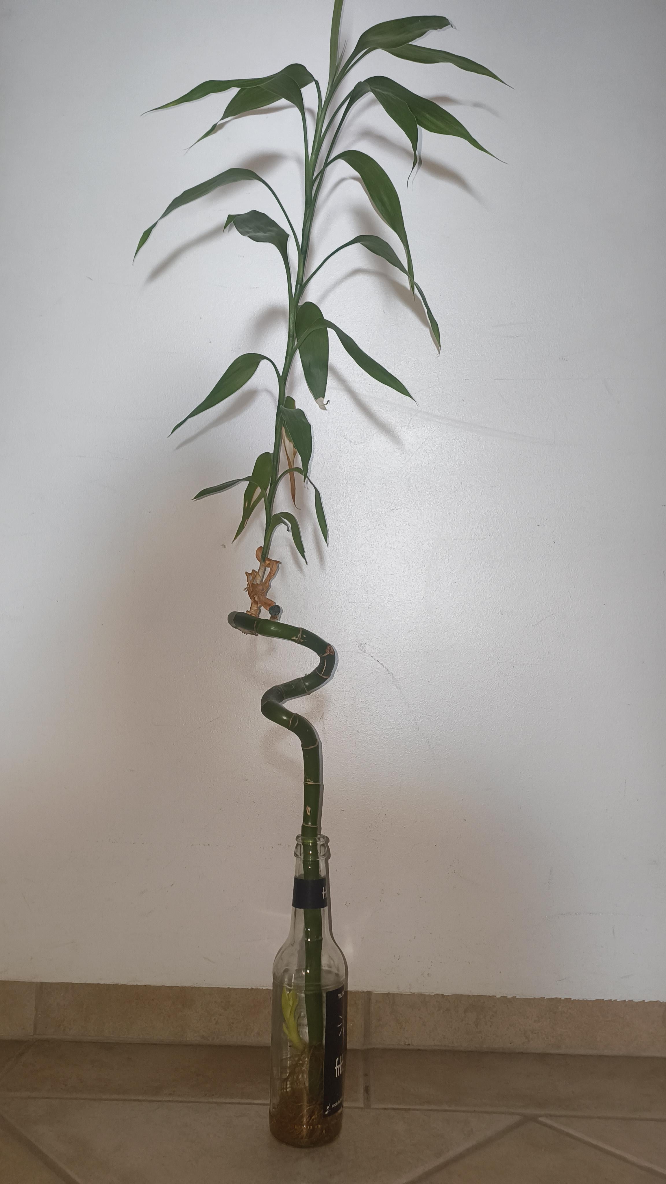 Bin kein Gärtner, aber das ist doch kein Bambus!? Das ist ein Drachenbaum. Die werden gerne als ‘lucky bamboo’ verkauft, sind aber ganz andere Pflanzen. Wachsen langsam und begleiten einen ewig.