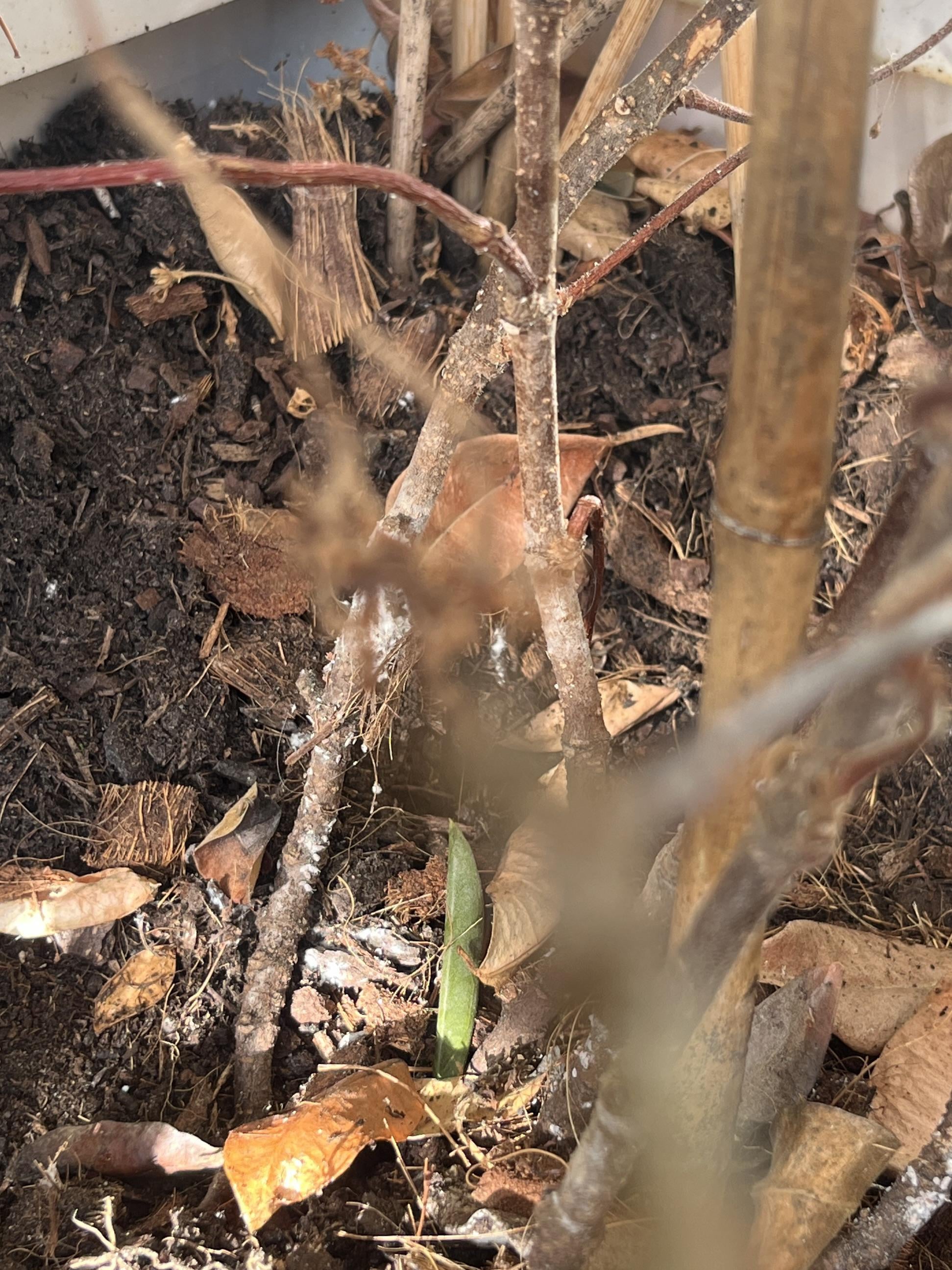 Aktuell stelle ich fest, dass das Problem nicht mehr nur die Blätter betrifft: Durch das Entfernen von etwas Erde und den Kokosfasern, die ich auf die Oberfläche gegeben hatte, stellte ich fest, dass die Füße an der Basis regelrecht befallen und beschädigt wurden.