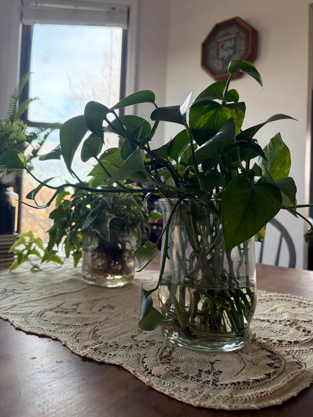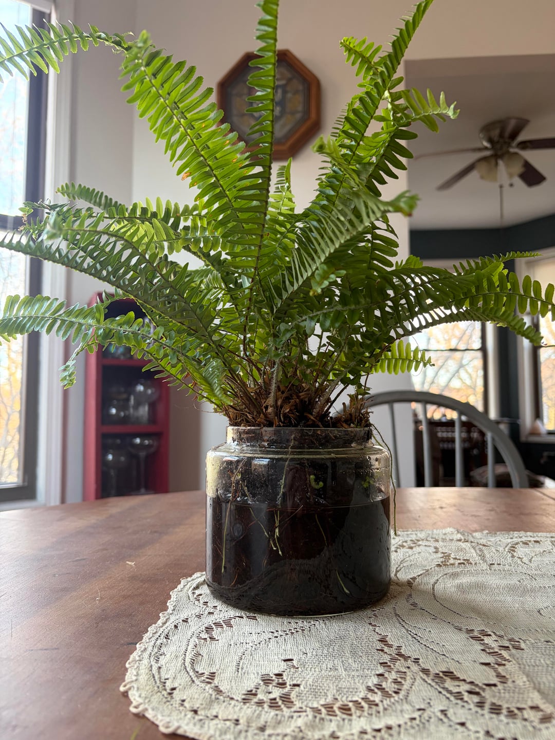 Ich war am skeptischsten gegenüber dem Farn, und er war zuerst verärgert, aber er hat sich daran gewöhnt und sendet nun regelmäßig kleine Wedel aus (einige davon in die falsche Richtung, wie Sie sehen können)! Das Aufrechterhalten des Wasserstands ist meiner Meinung nach einfacher als das Aufrechterhalten der Bodenfeuchtigkeit, und mir gefällt die „Ästhetik“.