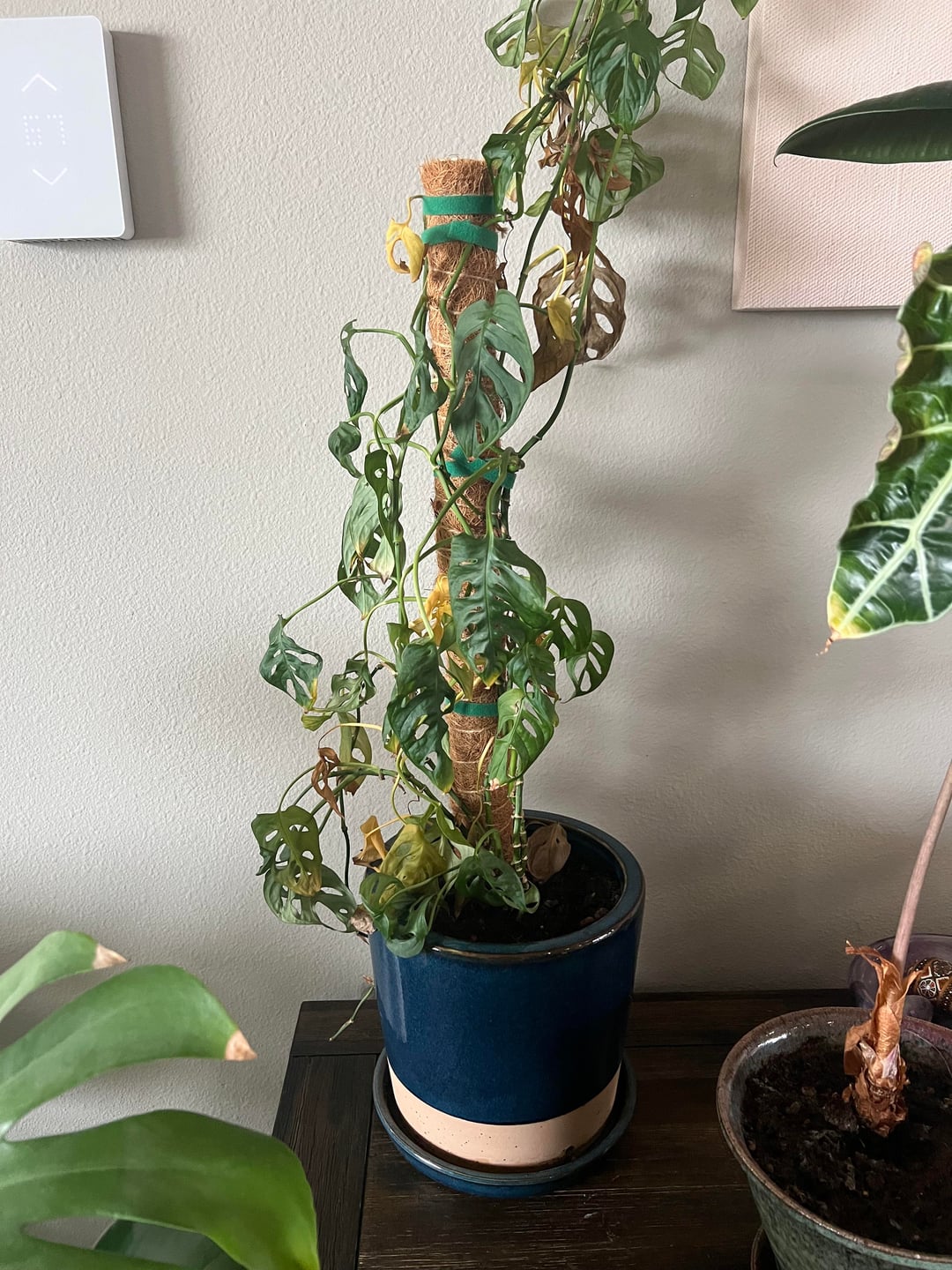Diese Pflanze war vor einer Woche knochentrocken, also habe ich sie gegossen, bis Wasser aus dem Abflussloch am Boden austrat. Seit ich sie gegossen habe, sah die Pflanze nicht mehr schlaff und traurig aus, sondern extrem schlaff und schrumpelig. Ich glaube, ich habe es zunichte gemacht 😭😭