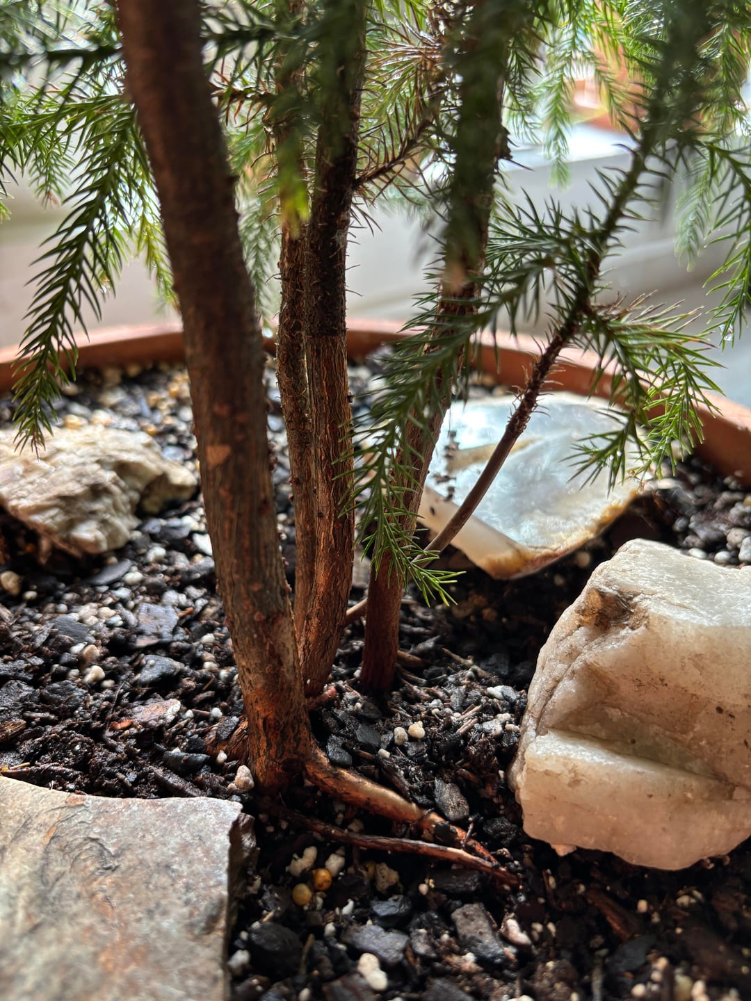 Wie soll ich sie trennen? Die beiden größten Stämme sehen etwas miteinander verschmolzen aus. Ich würde die Bäume gerne trennen und umtopfen, um das Wachstum zu fördern und ihnen dabei zu helfen, voller zu werden.