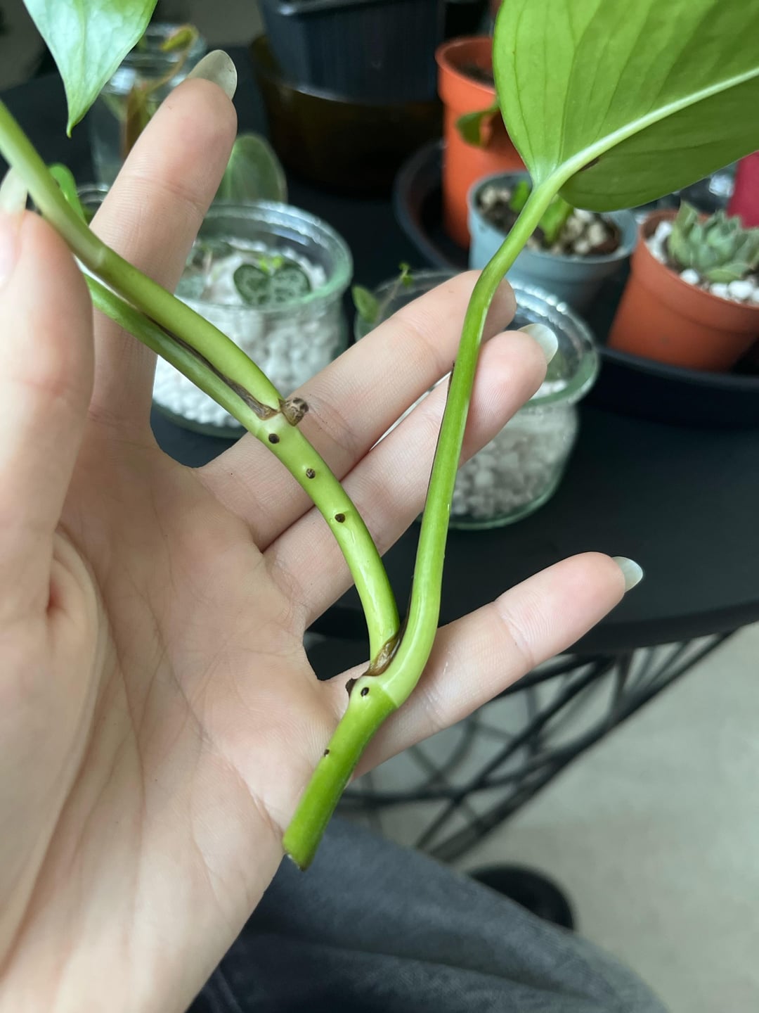 J’ai l’impression que t’as pas assez pour en faire deux mais je suis pas sûr. En tout cas je couperais la feuille la plus basse pour pouvoir bien immerger le nœud.