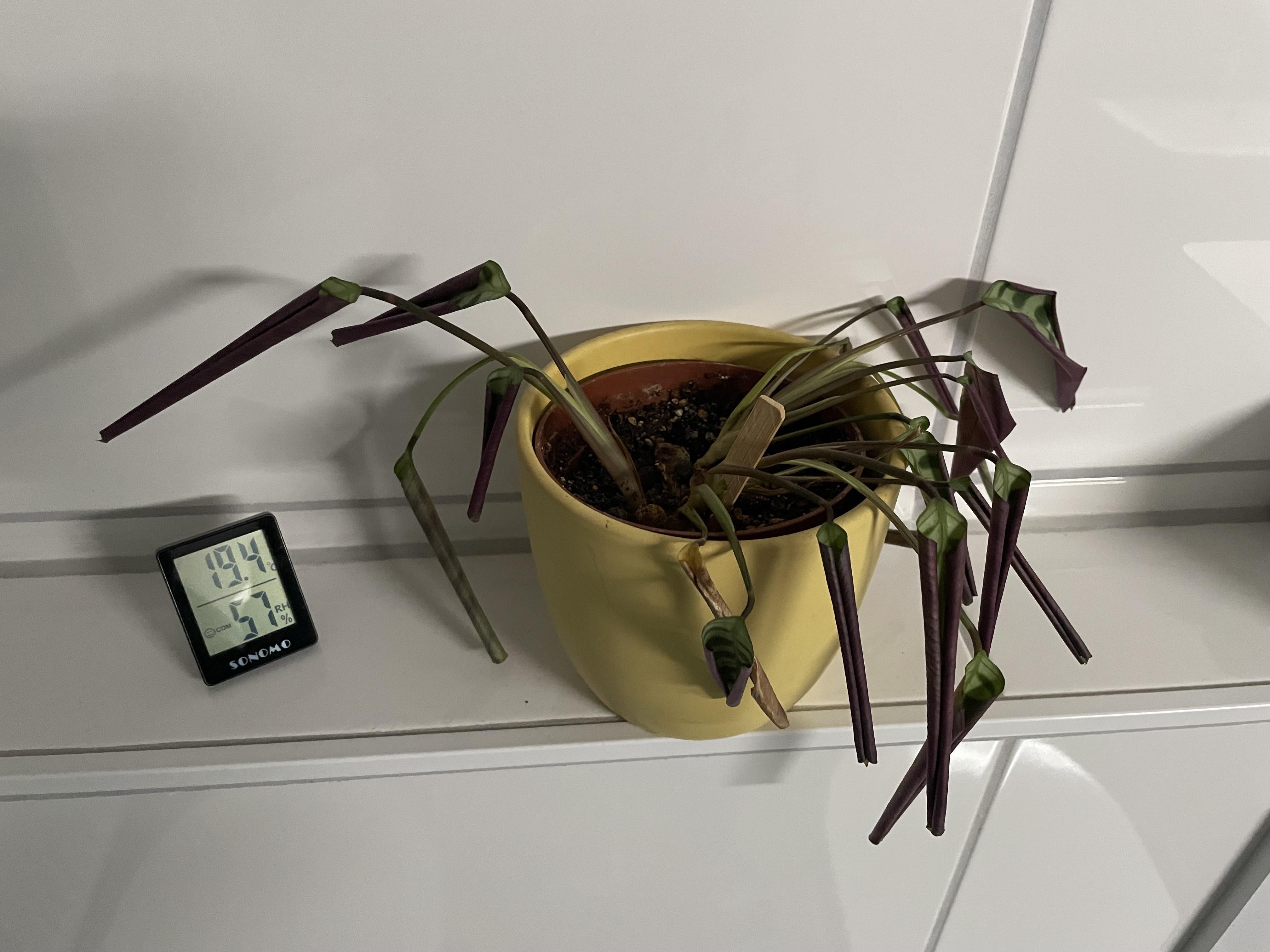 Siehe Bild. Seit meinem Umzug sieht meine tolle Diva so aus wie gezeigt. Schlapp, kraftlos, matt, zusammengerollt… Schlafzimmer, Küche, Wohnzimmer hab ich schon ausprobiert, tendenziell verschlechtert sich der Zustand, nun steht sie im Bad, da da die Luftfeuchtigkeit etwas höher ist.
