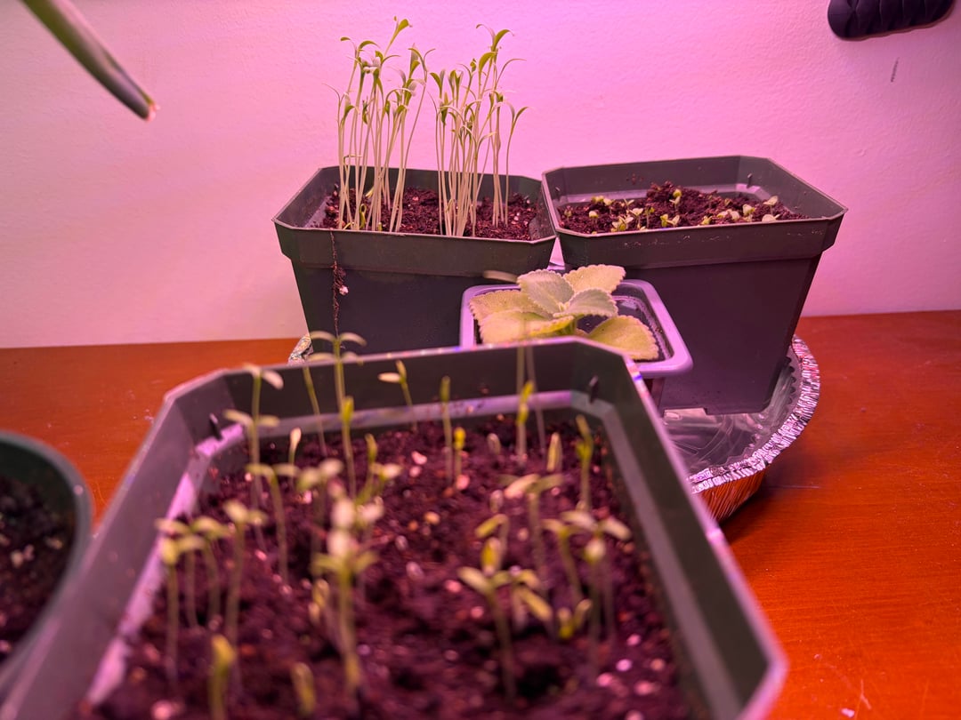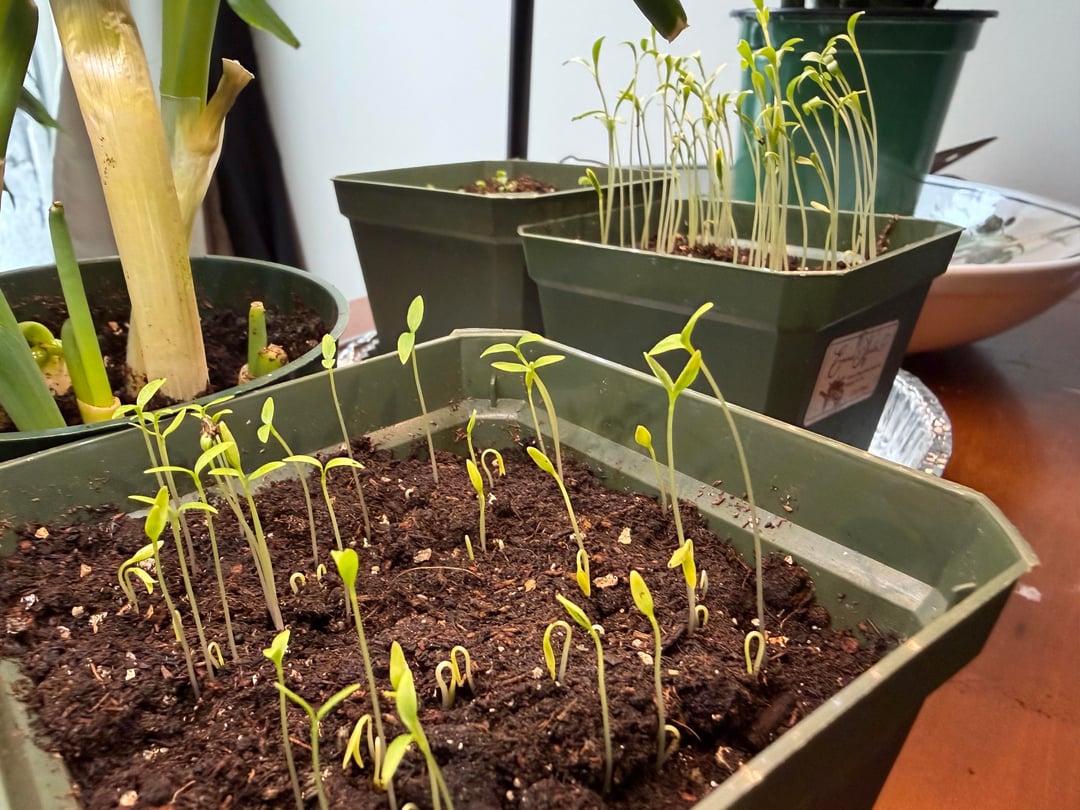 Zum ersten Mal in meinem Leben gelang es mir, Samen für Basilikum, Petersilie und Koriander erfolgreich zum Keimen zu bringen. Der Schnittlauch wächst aus irgendeinem Grund nicht. Wie auch immer, was mache ich jetzt? Wie groß lasse ich diese werden, bevor ich etwas unternehme? Muss ich sie umtopfen? Muss ich sie auf eine bestimmte Art und Weise zuschneiden? Ich bin hier im Blindflug.