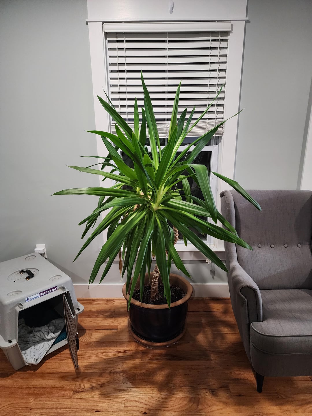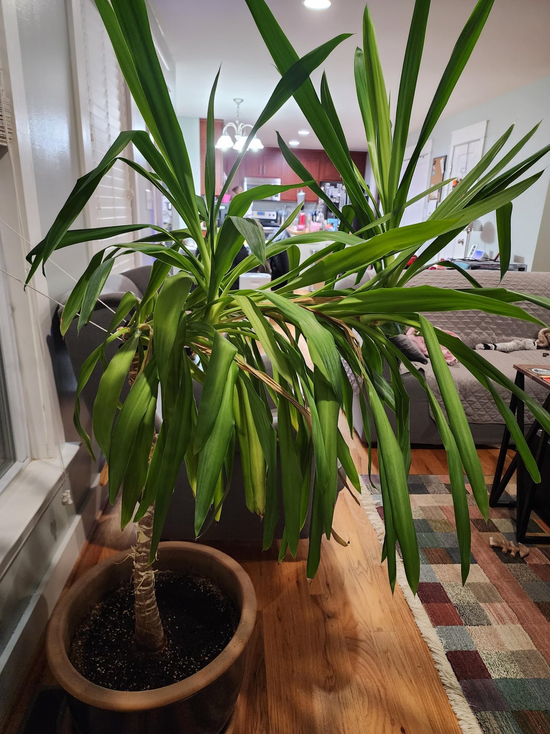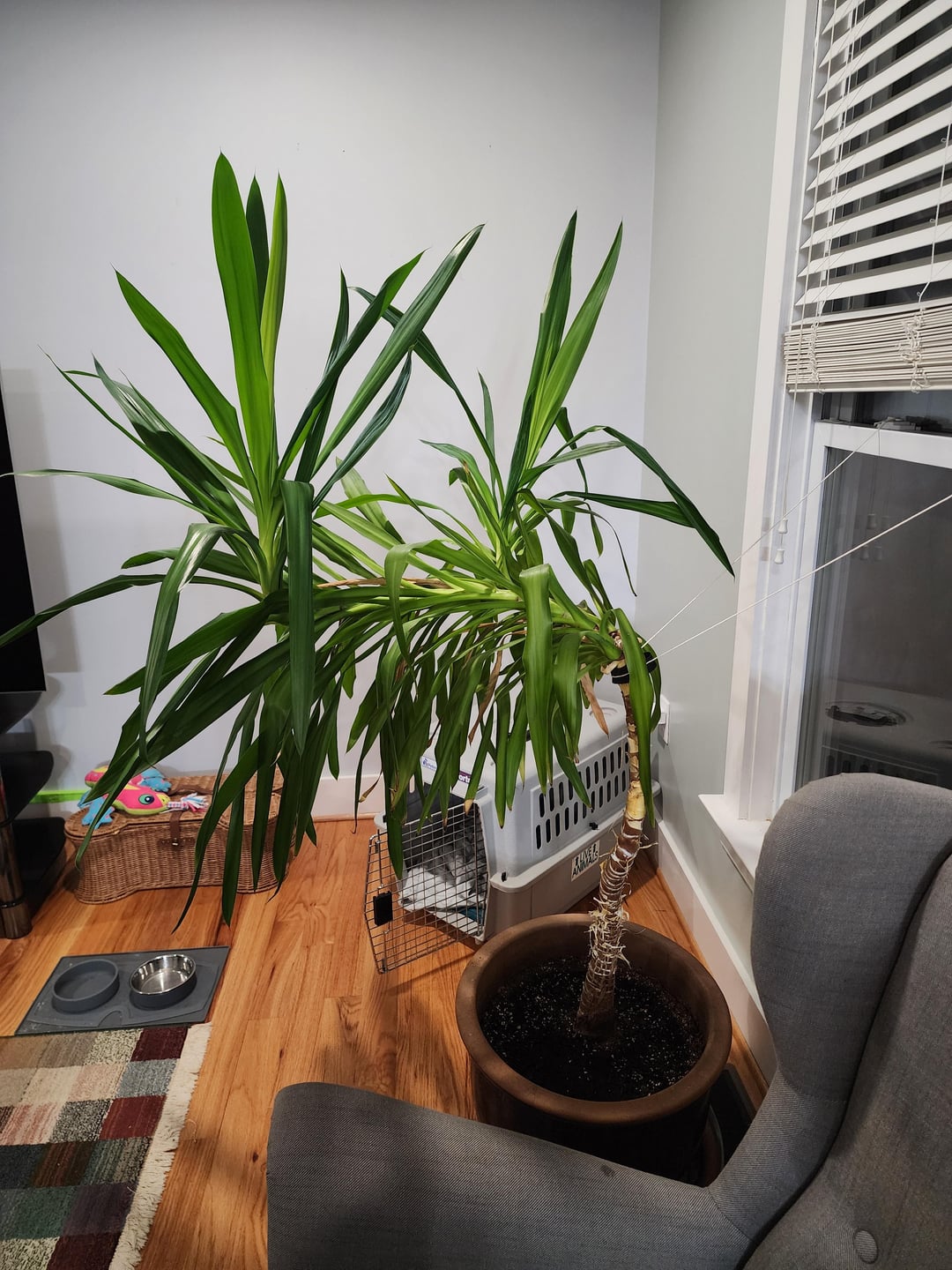 Hat jemand einen Rat, wie man diesen Yuca wieder aufrecht wachsen lassen kann?