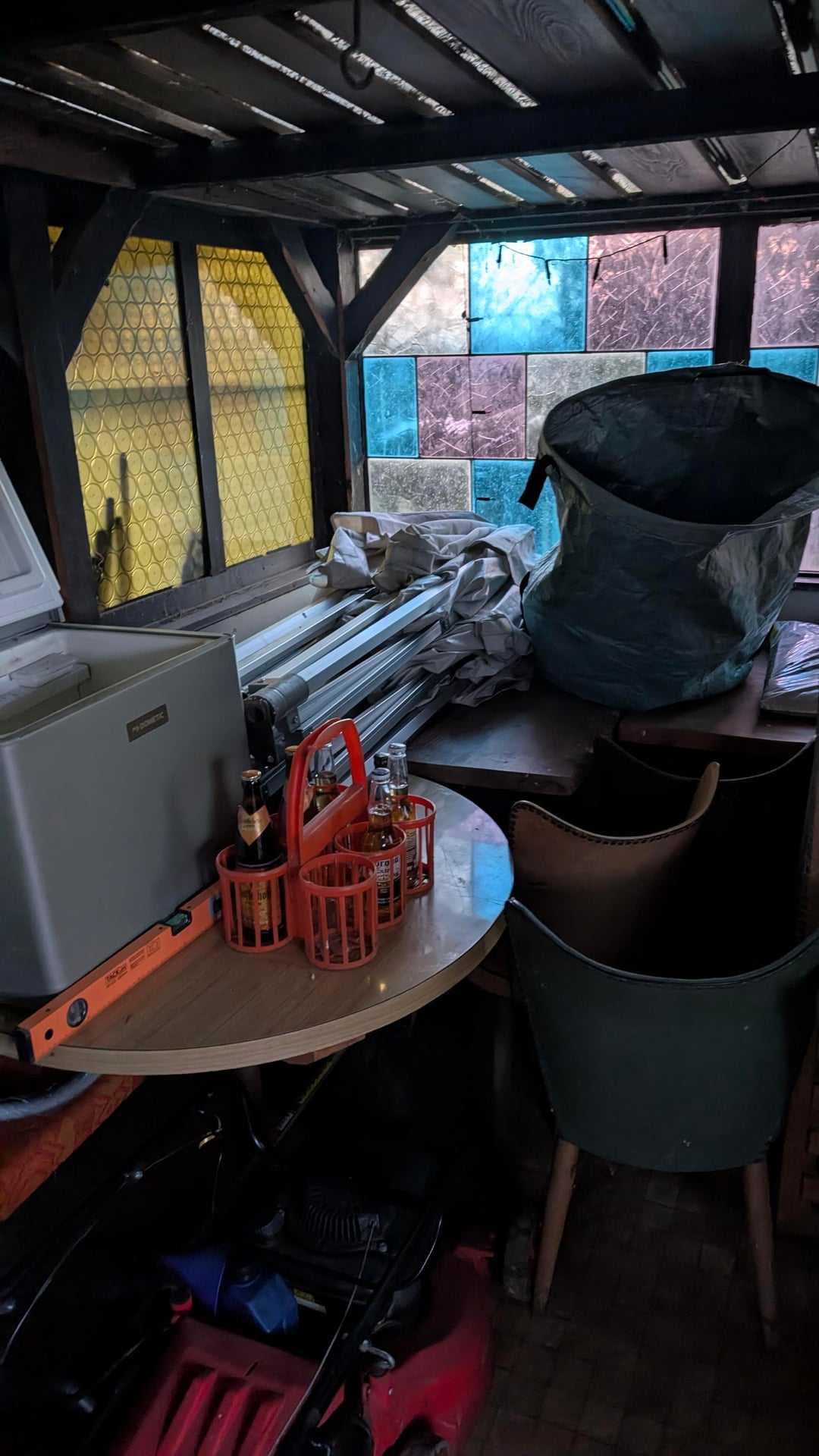 Am liebsten würde ich die Kiste eines Tages sanieren, einen Kamin, zwei Sessel und ein Bett reinstellen, um auch an kälteren Tagen im Garten zu verweilen (wir zelten hier gern an wärmeren Tagen).