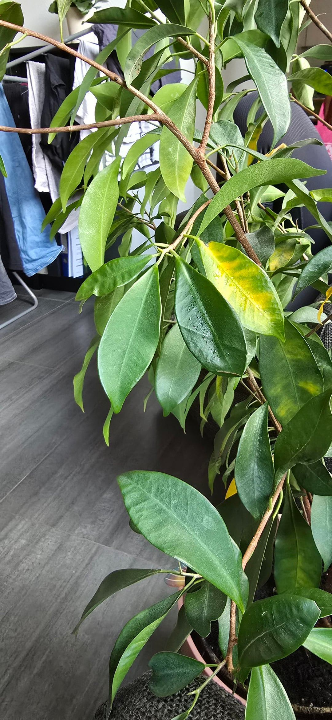 Hallo zusammen, diese Pflanze ist von meiner Freundin und sie bekommt langsam gelbe Blätter und andere Blätter fangen an zu hängen.