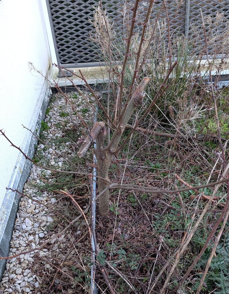 Der Baum wurde von einem Mieter beschnitten (es ist das Ding in der Mitte des Fotos, mit zwei Ästen; der Rest sind nur kleine Pflanzen, die man leicht herausreißen kann), aber er kann nicht herausgerissen werden, weil man befürchtet, dass es dadurch noch schlimmer wird. Und Sie müssen auf einen Bericht, eine formelle Mitteilung usw. warten.
