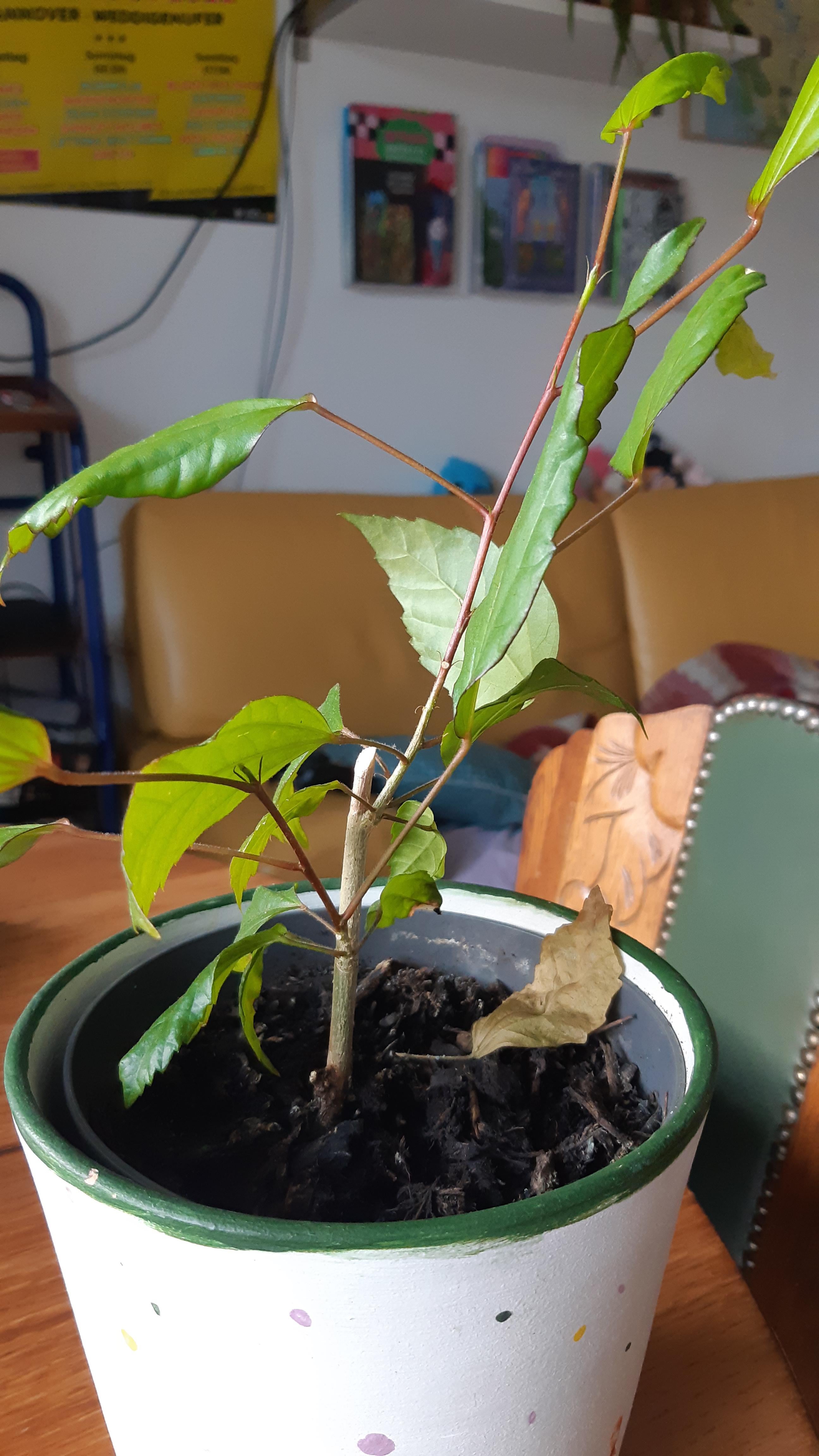 Ich habe diesen kleinen Ibiskussteckling geschenkt bekommen. Seitdem er in der Erde ist, wächst der Hauptstamm gut, aber er ist ganz allein. Ich frage mich, ob es nicht eines menschlichen Eingreifens bedarf, um Konsequenzen zu erzeugen?