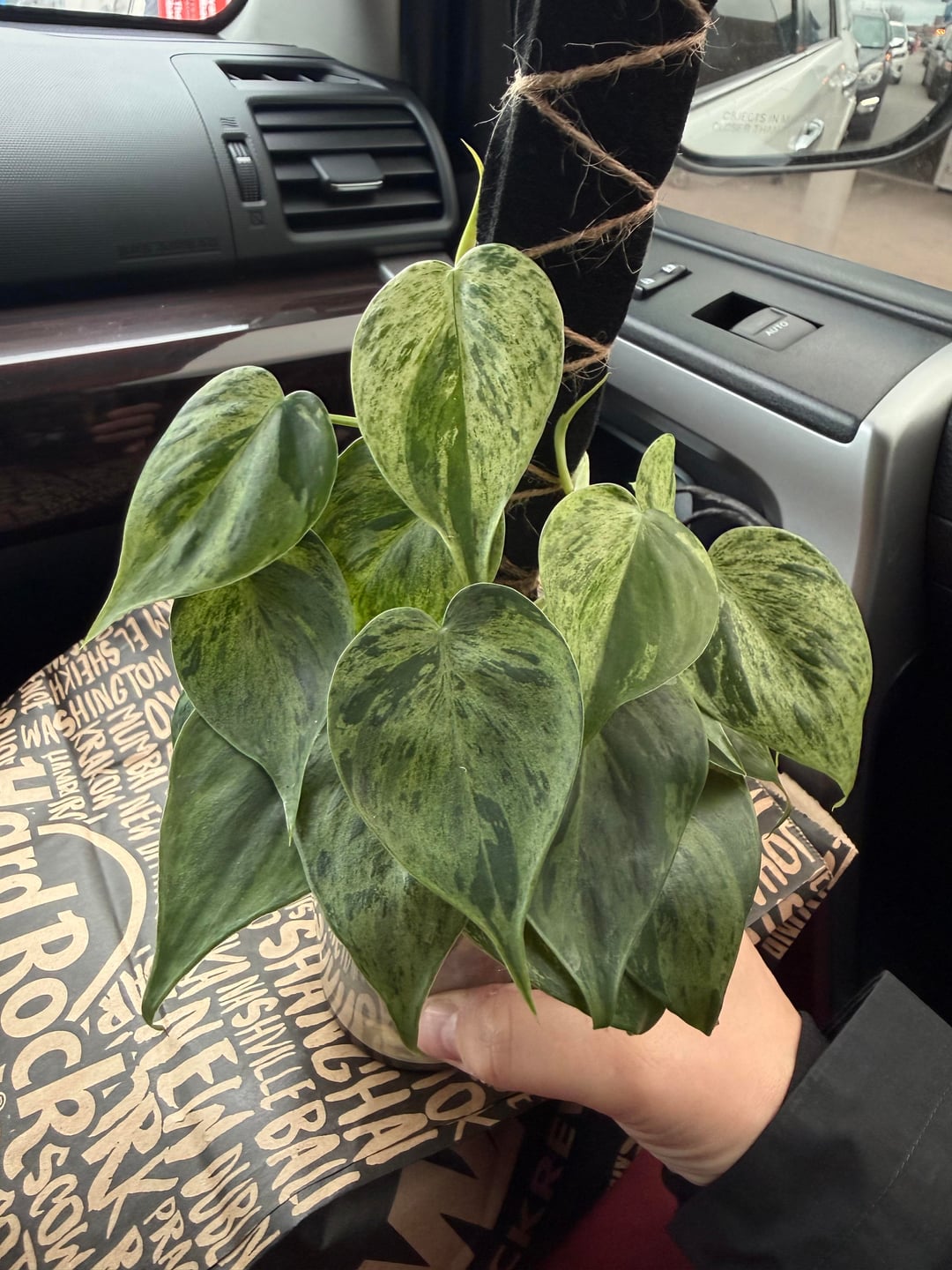 Sollte sagen, mein Mann hat mich gefahren, lol! Habe diesen bunten Herzblatt-Philodendron gekauft! Ich habe diese wunderschöne Bucht für 20 $ bekommen und sie hat sogar diese Scidapus-Satin-Jade KOSTENLOS dazugelegt