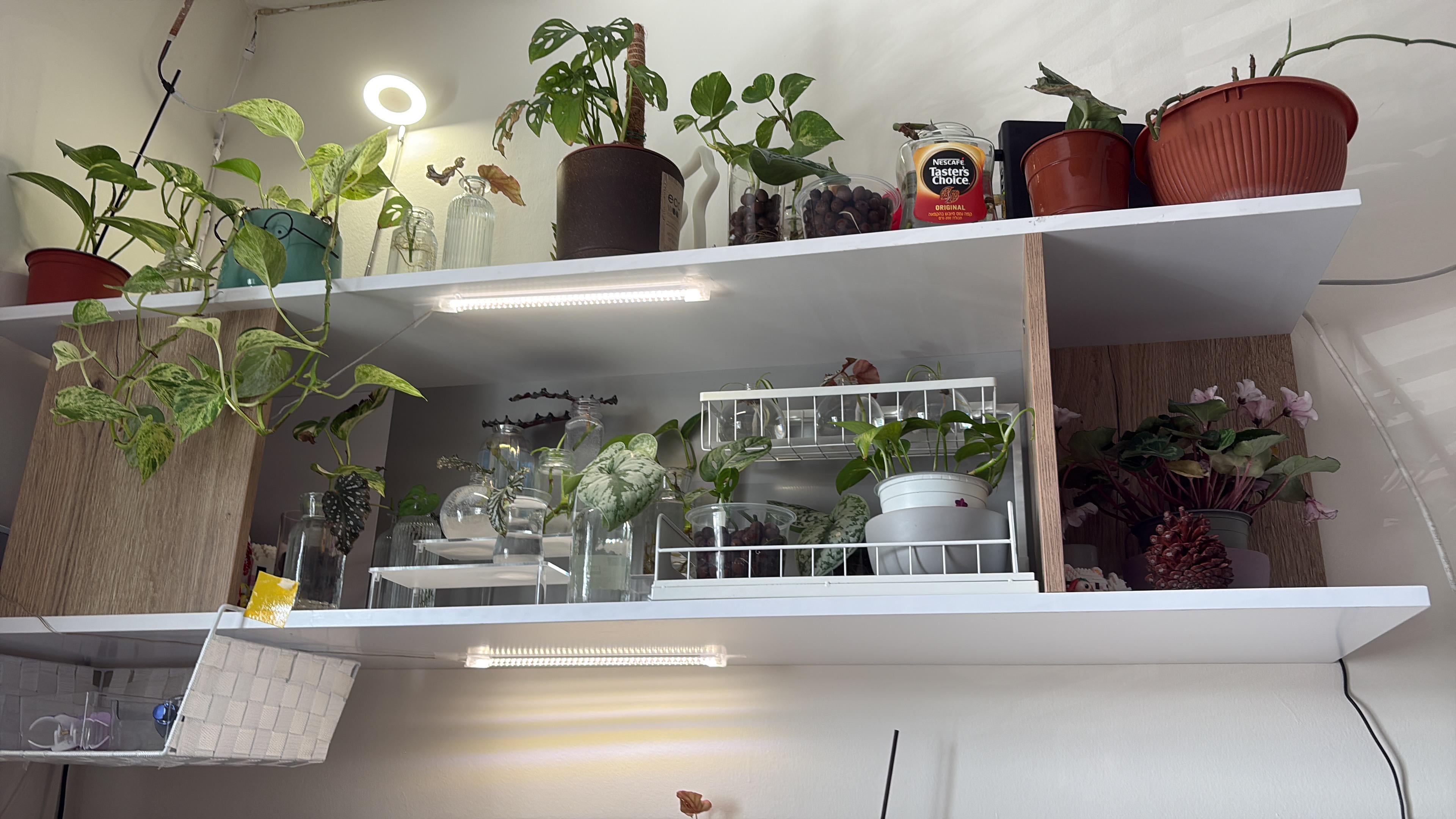 Darunter habe ich auch einen Schreibtisch, aber das sind die einzigen Orte, an denen ich meine Pflanzen platzieren kann, weil sie beleuchtet sind Von: Matcha1303