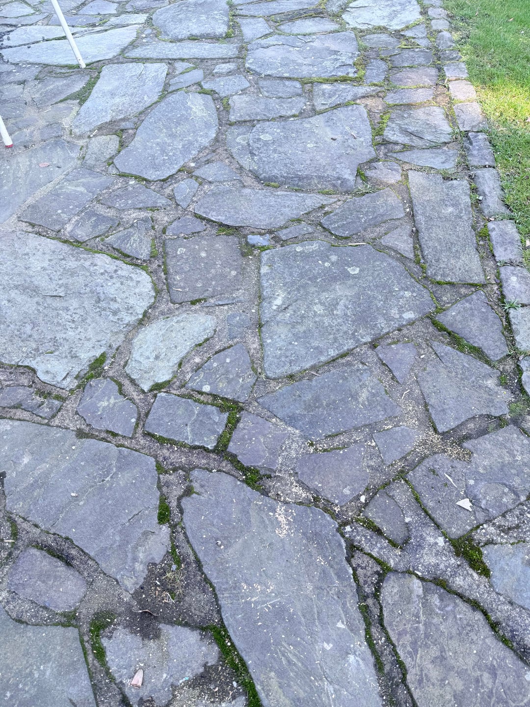 Meine Frau und ich haben ein Hus gekauft, welches als Bodenbelag mit alten Bruchsteinen umrandet ist. Es ist jedoch schon etwas in die Jahre gekommen. Wie man auf dem Bild sieht, brechen die Fugen auf und im Sommer kommt ziemlich viel Unkraut durch.