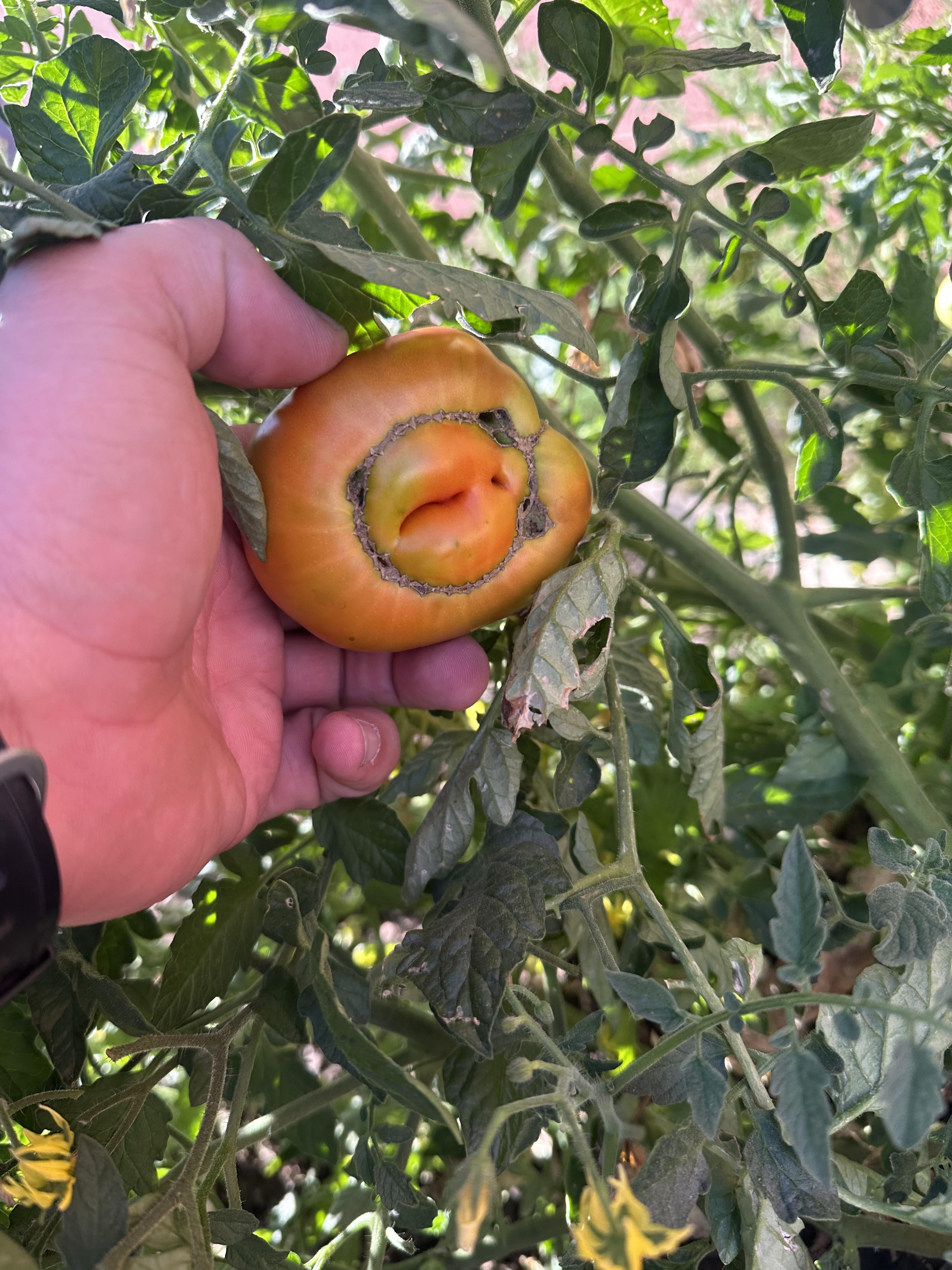 Ich möchte sehen, was mit meiner Tomate passiert ist. Dies ist die erste, die kurz vor der Reife stand, also hoffe ich, dass ich das Problem bei den neuen vermeiden kann.