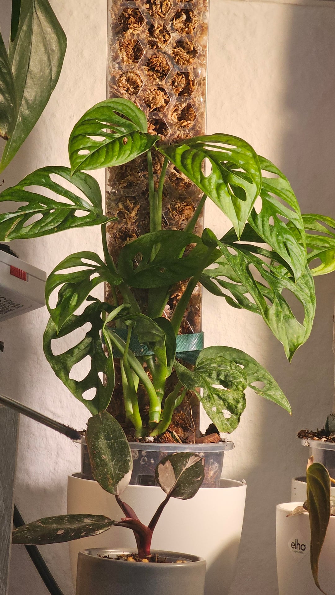 Habe die Adansonii Mint am 10.12.25 von Plnts erhalten, leider mit Wurzelfäule. Der Preis wurde erstattet, was auch gut war, weil meine Erfahrung mit Adansoniis, die Wurzelfäule haben, jetzt nicht die beste ist. Entweder sind in kurzer Zeit alle Wurzeln weggefault oder direkt noch der Stamm mit. Egal, wie gut desinfiziert und alles entfernt wurde. Somit freut es mich richtig dolle, dass sie sich dieses Mal so schnell erholt hat und von Plug größer auf die jetzige Größe gewachsen ist + neue Wurzeln in einem Wahnsinnstempo bildet. Mit dem Moosstab ist sie an einer Stelle auch schon verwachsen.
