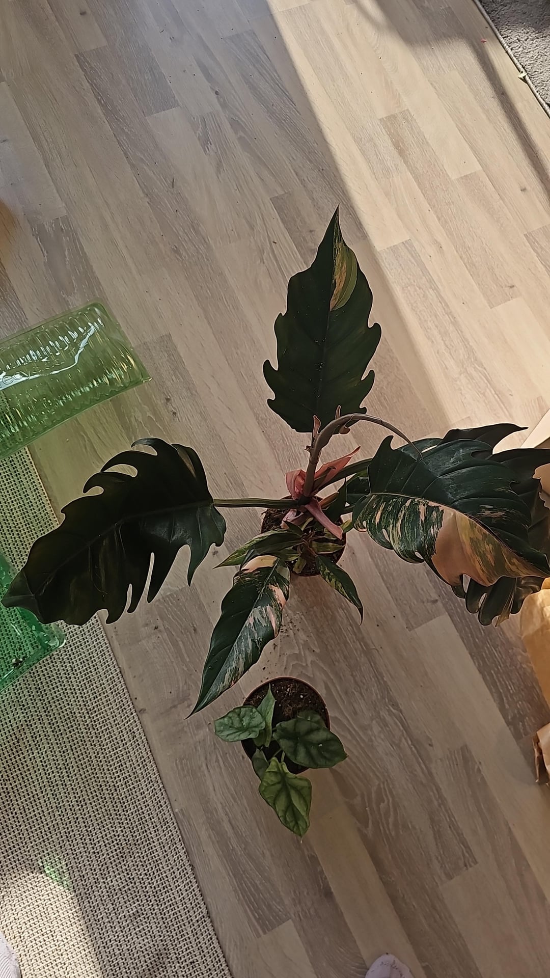 Also ich würd ja jetzt nicht sagen das die irgendwie traurig aussehen. Die Alocasie wächst nur etwas schief und von dem RIESEN Caramel Marble sind nur zwei Blätter etwas beschädigt + der Topf für die Wurzeln gut zu klein.