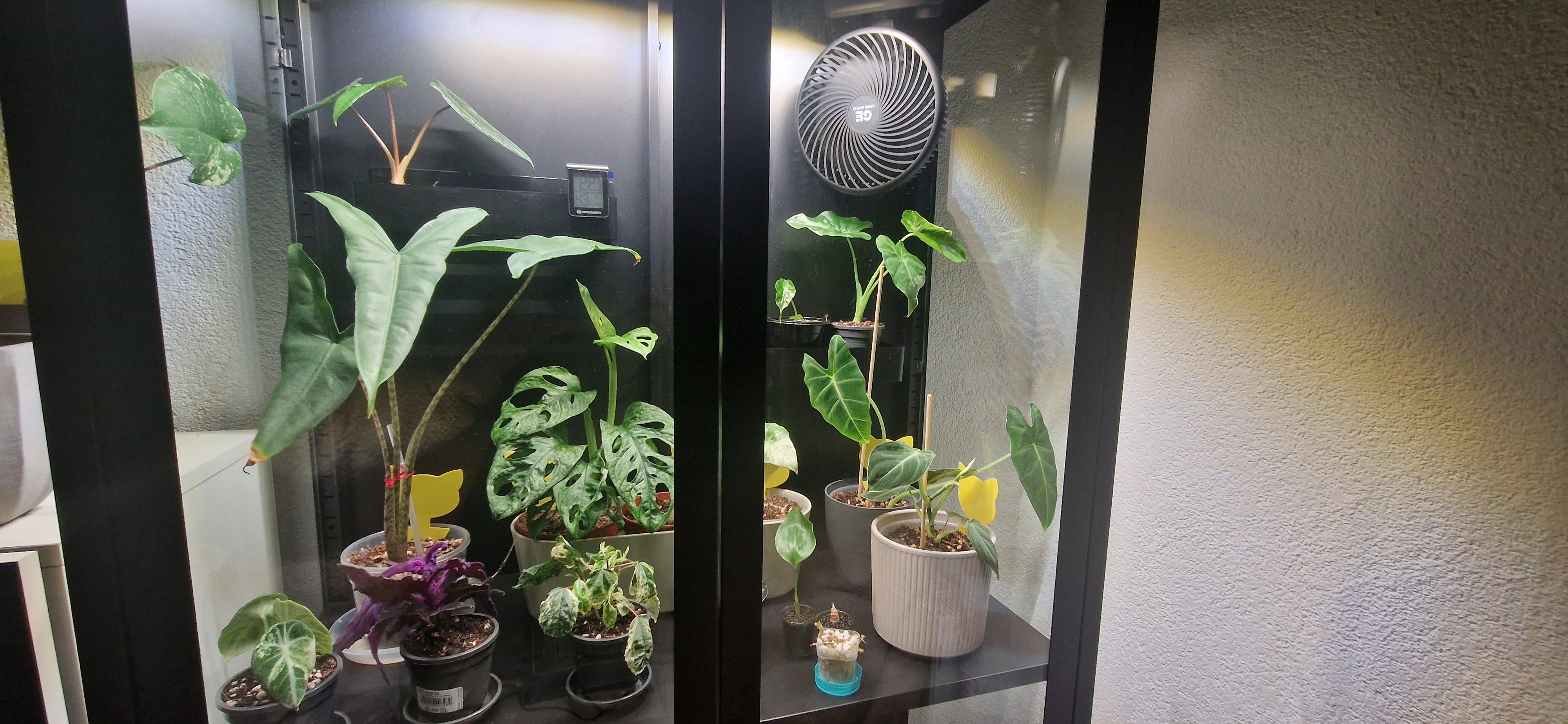 Ich hab seit 2 Tagen meine Vitrine und Pflanzen stehen auch genügend drin, fürs erste. (Alocasien, Philo, Ficus…)