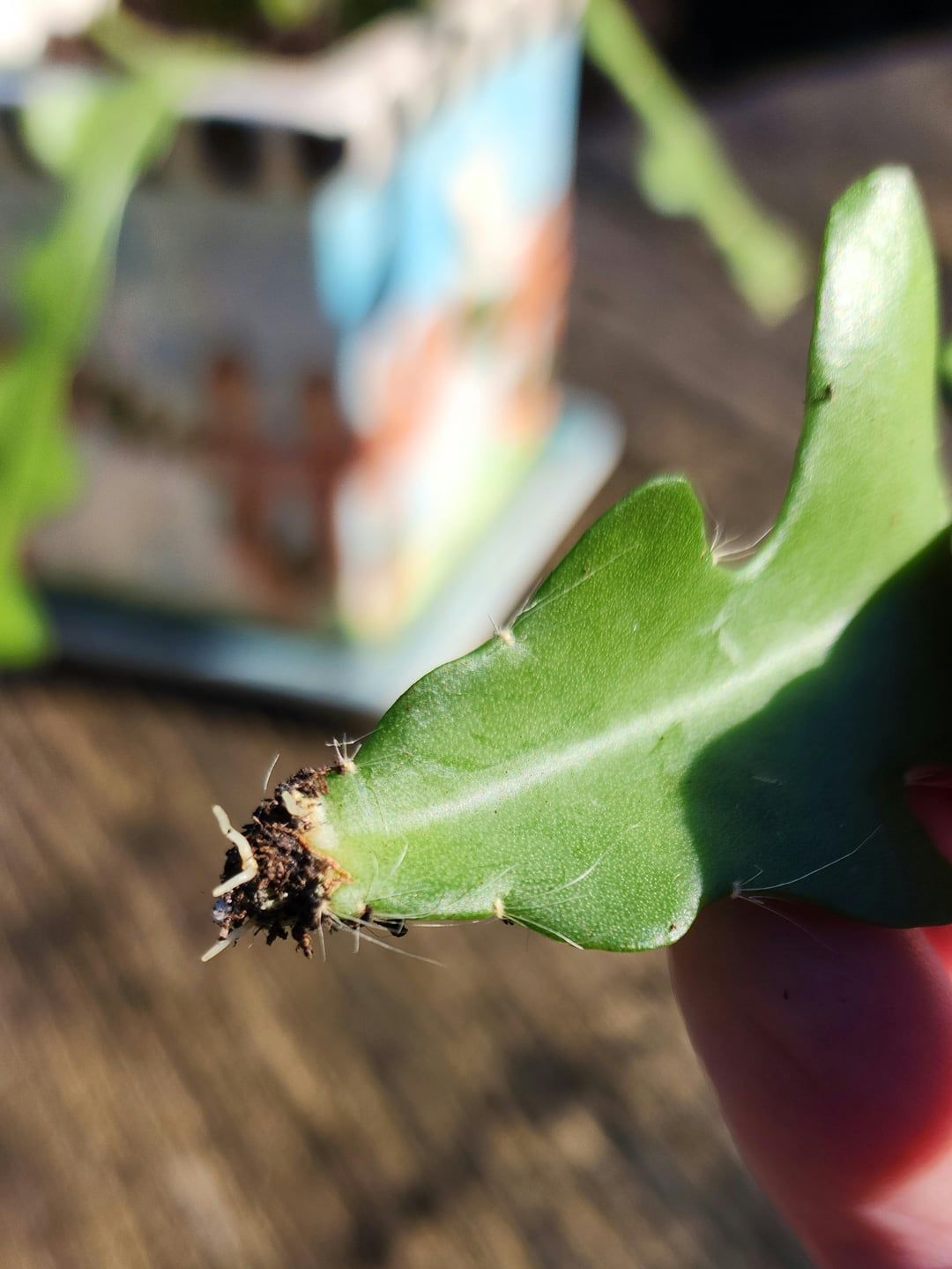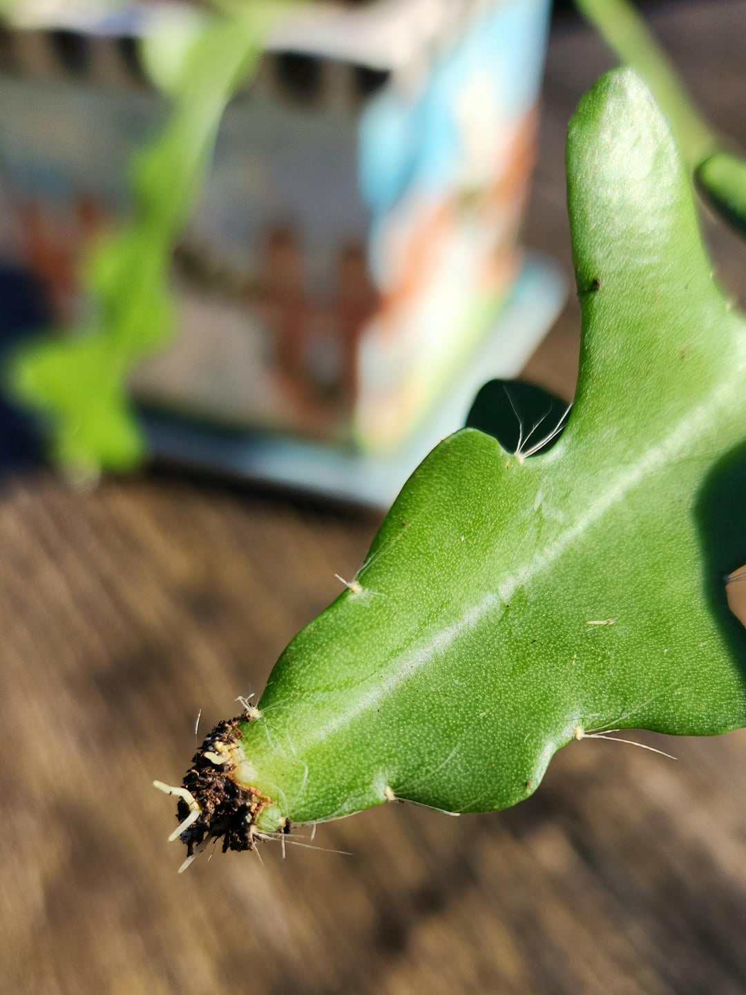 Dies ist das erste Mal, dass ich einen Zick-Zack-Kaktus vermehre, und die Wurzeln scheinen viel langsamer zu wachsen als bei anderen Sukkulenten, die ich zuvor vermehrt habe. Von: raincoastghost