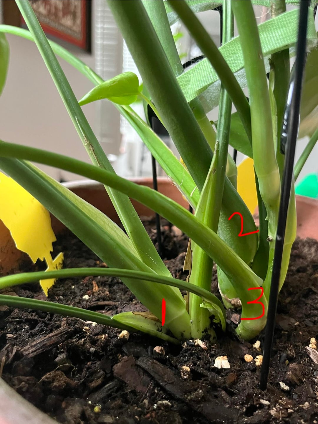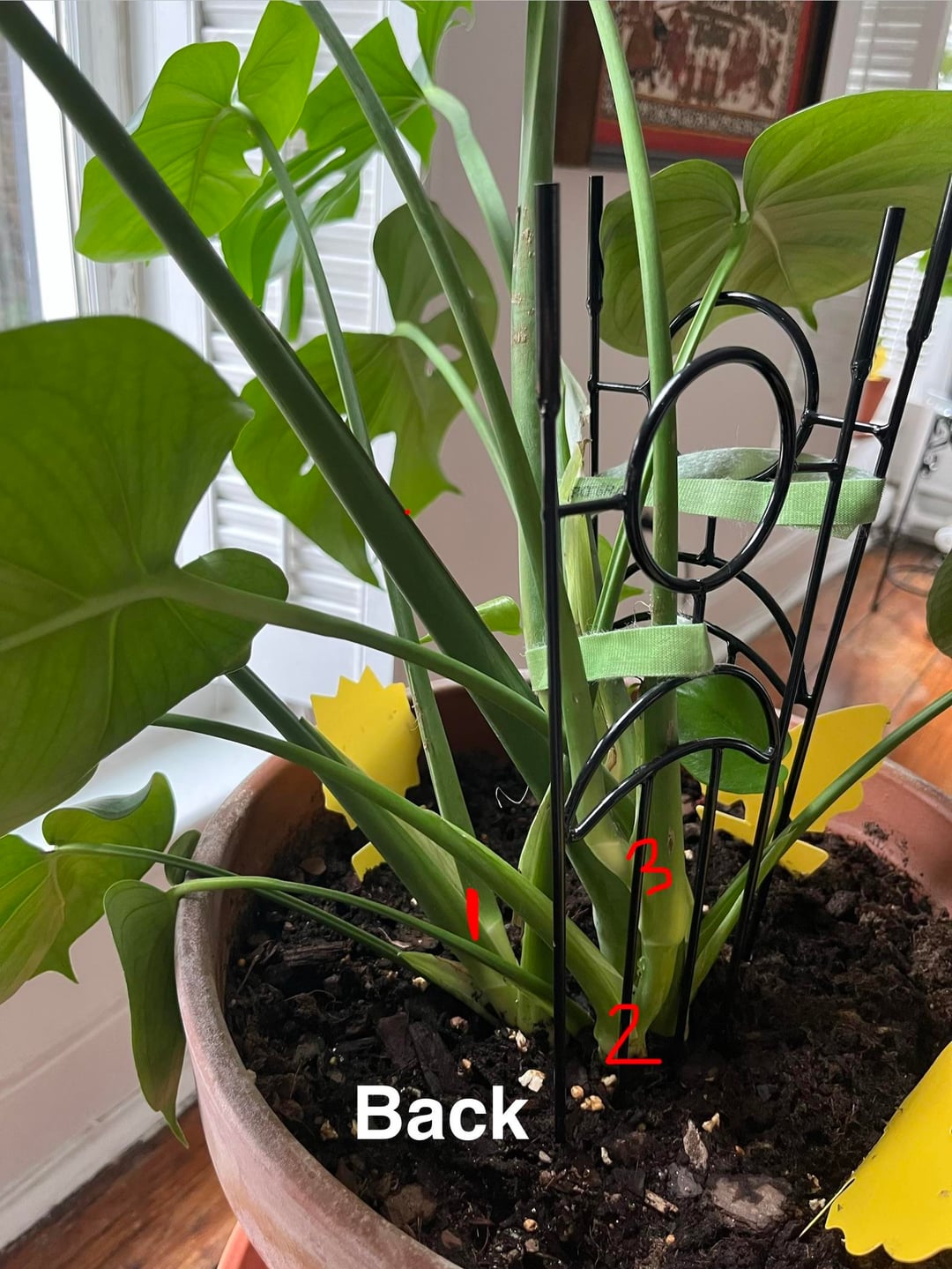 Ich habe dieses Monstera und fange an zu denken, dass ich eine Moosstange hinzufügen muss…. Allerdings scheint es sich bei der Monstera tatsächlich um drei Pflanzen zu handeln. Die Wurzeln der größten Pflanze scheinen von der Quelle aus zu wachsen, wo die Blätter sind?? Eine der Pflanzen scheint die Rückseite der größten Pflanzen zu blockieren, und ich gehe davon aus, dass ich dort die Moosstange angebracht habe. Was soll ich tun? Muss ich die drei Pflanzen trennen? Ich habe Angst, es aus dem Topf zu nehmen und die Pflanze zu belasten. Sehen Sie sich die Bilder an, um zu sehen, was ich meine. Danke!