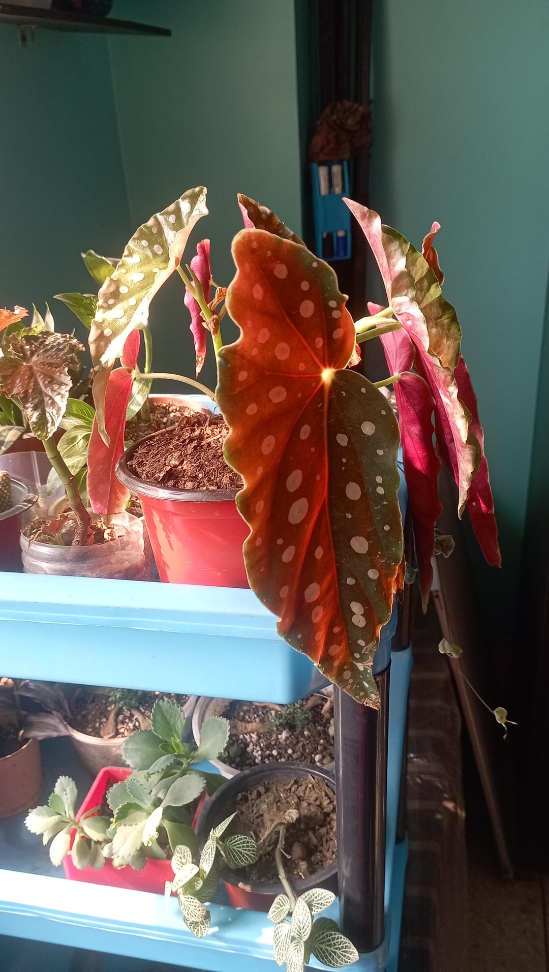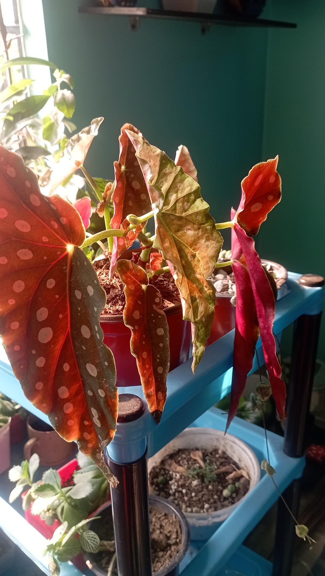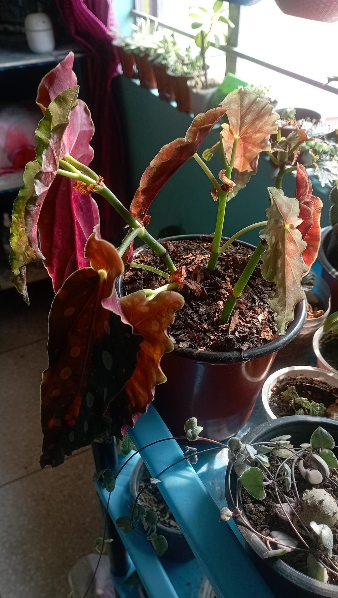Stimmt etwas mit meiner Begonie nicht? Ich scheine zu verwelken oder mich zu verbiegen. Ich habe es vor genau einem Monat gekauft und nach dem Kauf sind viele neue Blätter gewachsen. Manchmal besprühe ich die Blätter, um braune Spitzen zu vermeiden, und mein Haus hat eine gute Luftzirkulation. Außerdem habe ich einen Luftbefeuchter in der Nähe aufgestellt. Ich habe es vor zwei Tagen gegossen.