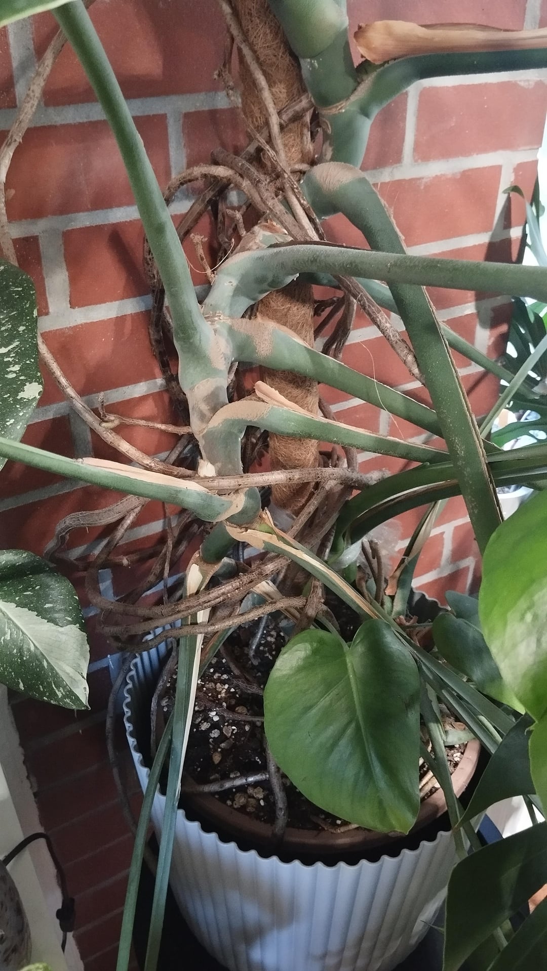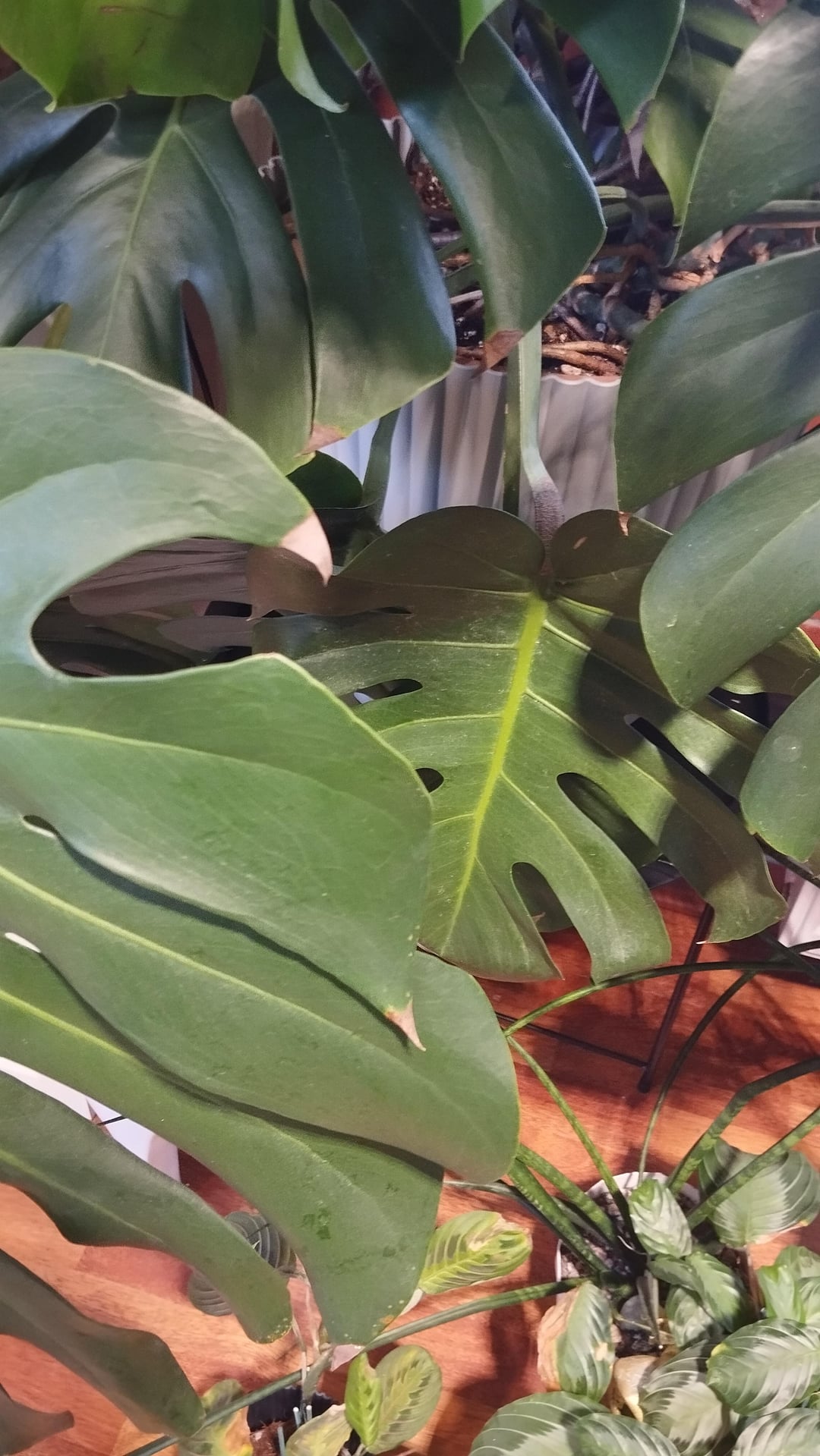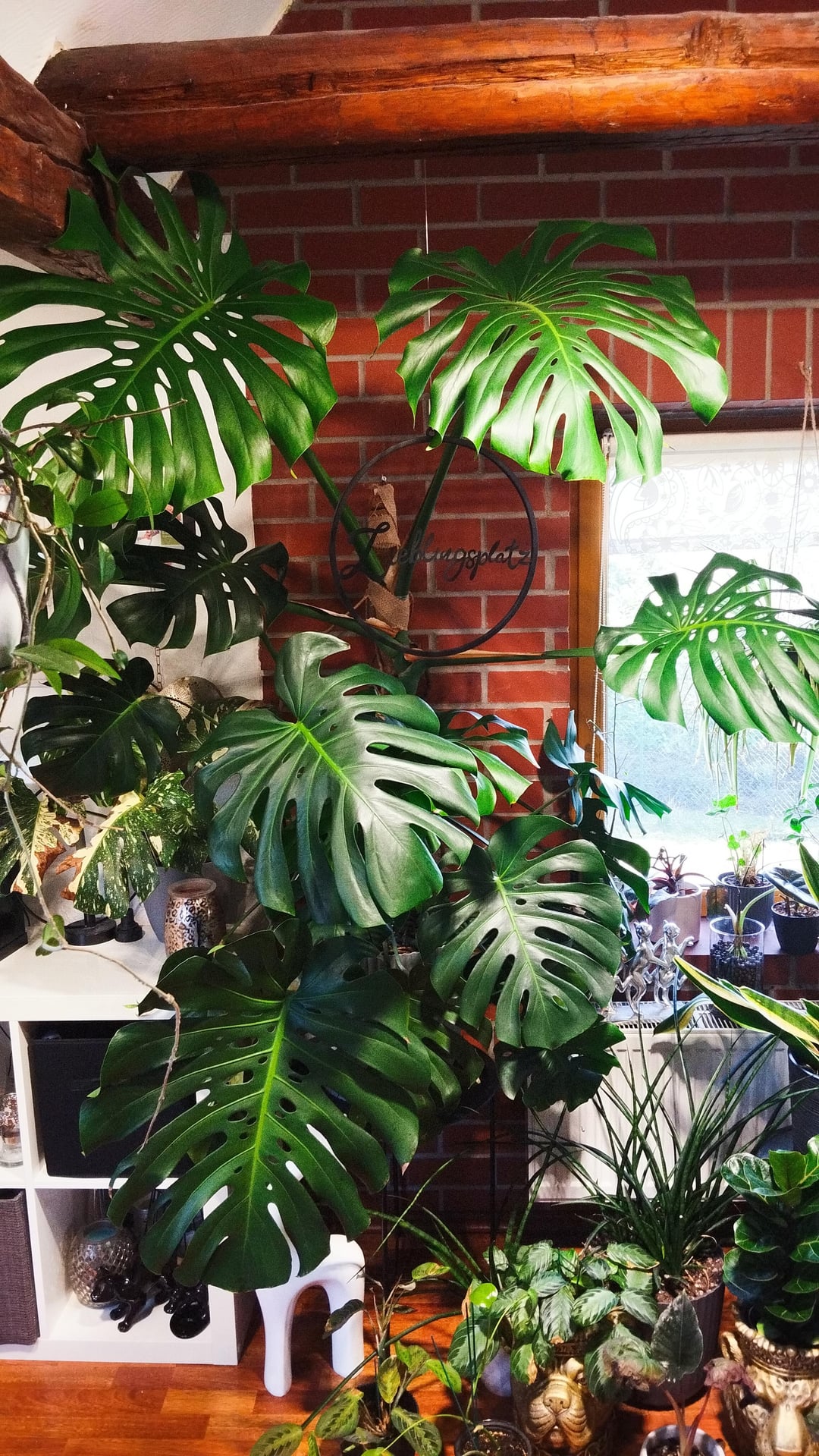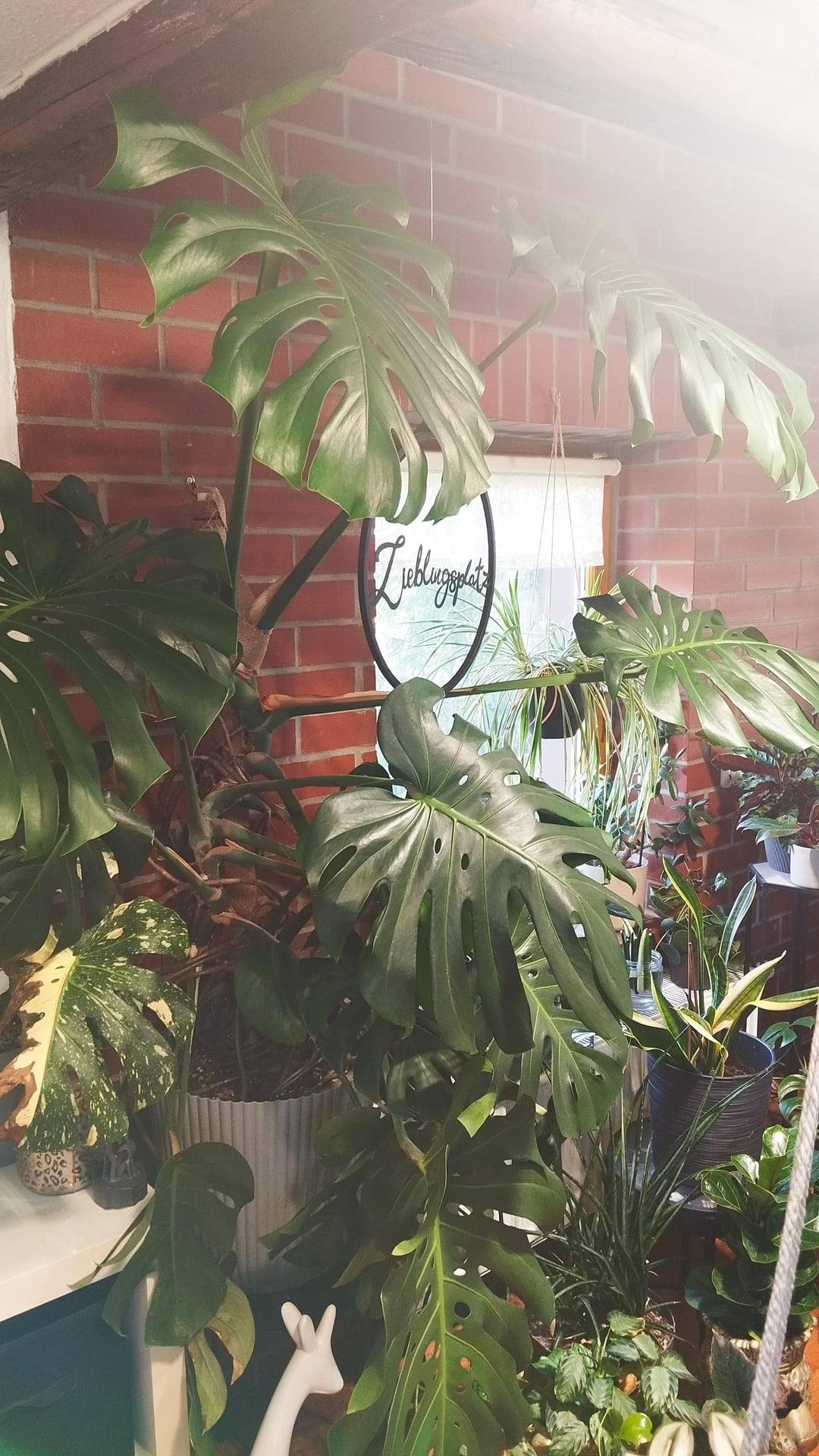 Hallo Miteinander. Ich habe vor einiger Zeit eine Monstera bei mir aufgenommen. Es ist nicht die erste doch die großte und darum mach ich mir Sorgen oder bilde es mir auch nur ein. Ich hatte sie umgetopft da ich die ganzen 2m langen Luftwurzeln in die Erde einführen wollte. Als Substrat nutzte ich gute Pflanzenerde, Perlit, Mineralsubstrat und Kokosfasern. Zuvor hatte sie einen 20cm Topf nun einen 30cm sonst hätte ich die ganzen Wurzeln nicht mit rein legen können. Sie hat wie alle anderen Pflanzen außen herum Sonnenlicht und zusätzlich sind Pflanzenstrahler verbaut die 9 Stunden unterstützen. Zur Düngung erhält sie npk Mineral flüssig, alle 2 Wochen. Unten schiebt sie neue Blätter und oben ist auch eine neue grüne Blattscheide. Wieso sehen die Blätter so aus, weshalb kräuseln die sich so, warum werden an einigen die Spitze braun? Soweit ist sie Schädlingsfrei, daran sollte es nicht liegen. Hier nutze ich mit sehr guten Erfolg an allen Pflanzen im Wechsel Careo, Lizetan und Spruzit. Sie ist bei mir auch schön in die Breite gegangen, richtet sich wohl den Lichtverhältnissen neu aus, zuvor stand sie bei jemanden vor der Balkontür und dementsprechend waren die Blätter schmal übereinander angereiht. Soviel jetzt zu der Pflanze, läuft hier mit ihr etwas schief ?