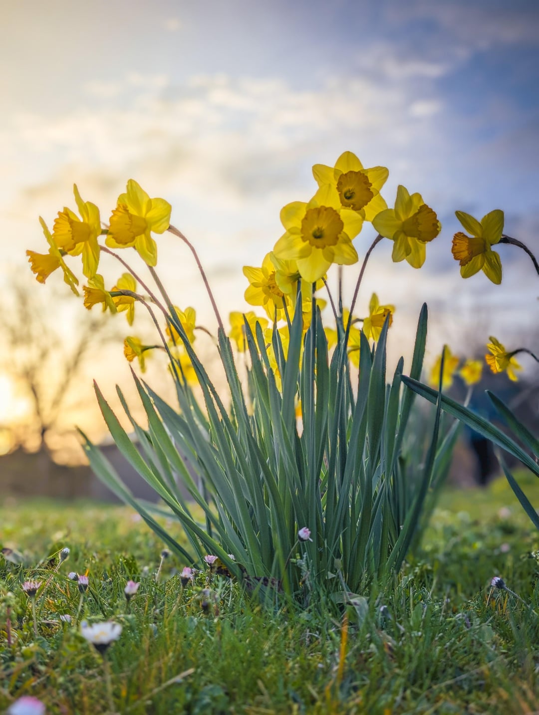 La premiere photo rest incroyable ! Les transparences des jonquilles et la chaleur du ciel