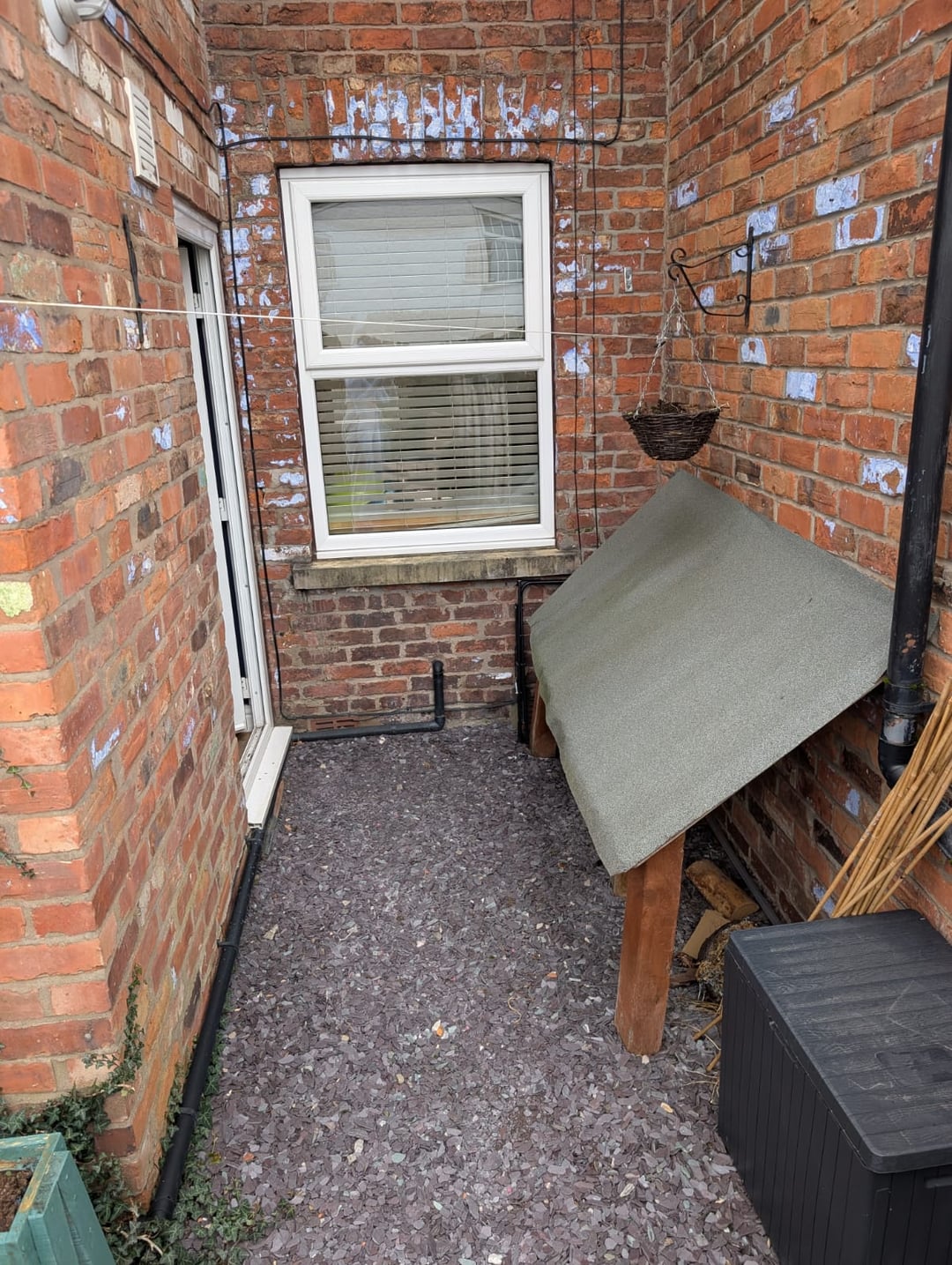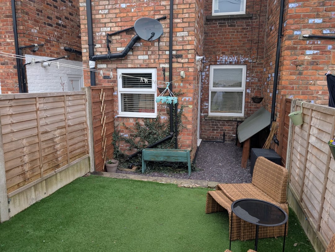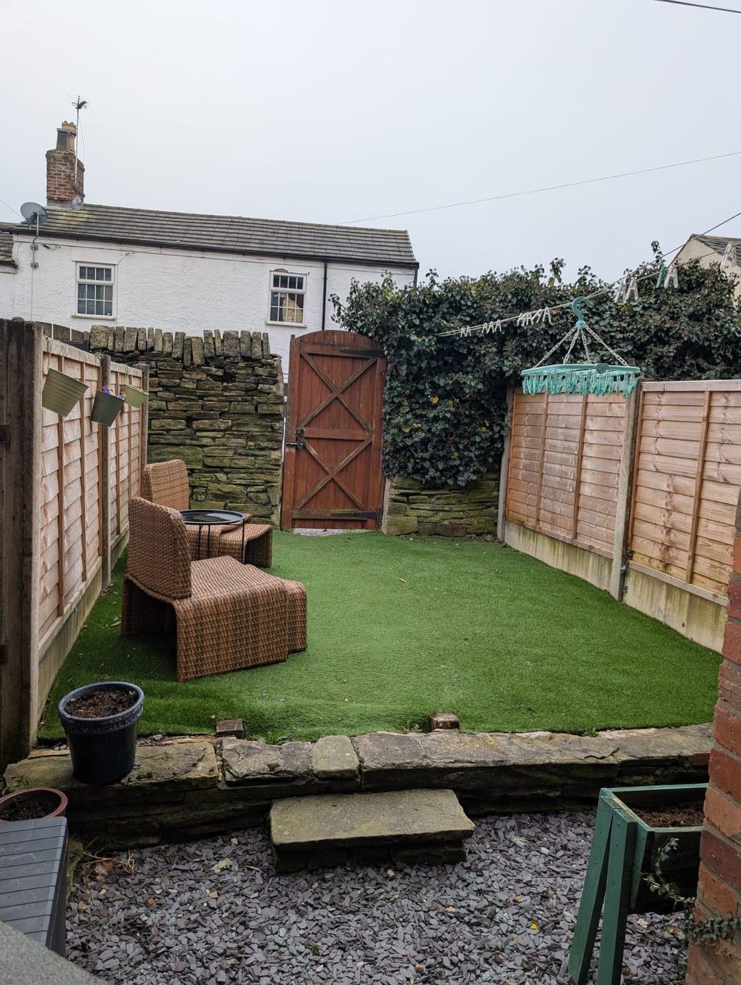 Ich hätte gerne einen Rat, was andere Leute mit diesem Raum machen würden und wo ich anfangen soll. Wir denken darüber nach, den Kunstrasen zu errichten und ein paar Flaggen aufzustellen. Außerdem fällt die kleine Lehne an der Hintertür herunter, ich hasse es absolut. Ansonsten habe ich keine Ahnung, es ist unser erstes Haus und unser erster Garten und ich möchte daraus einen schönen kleinen Bereich zum Entspannen machen