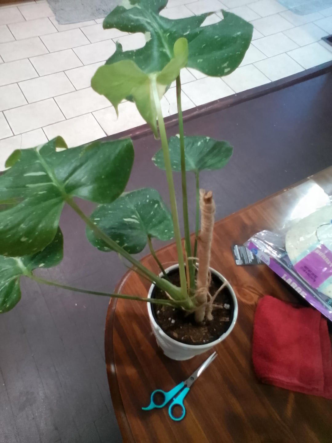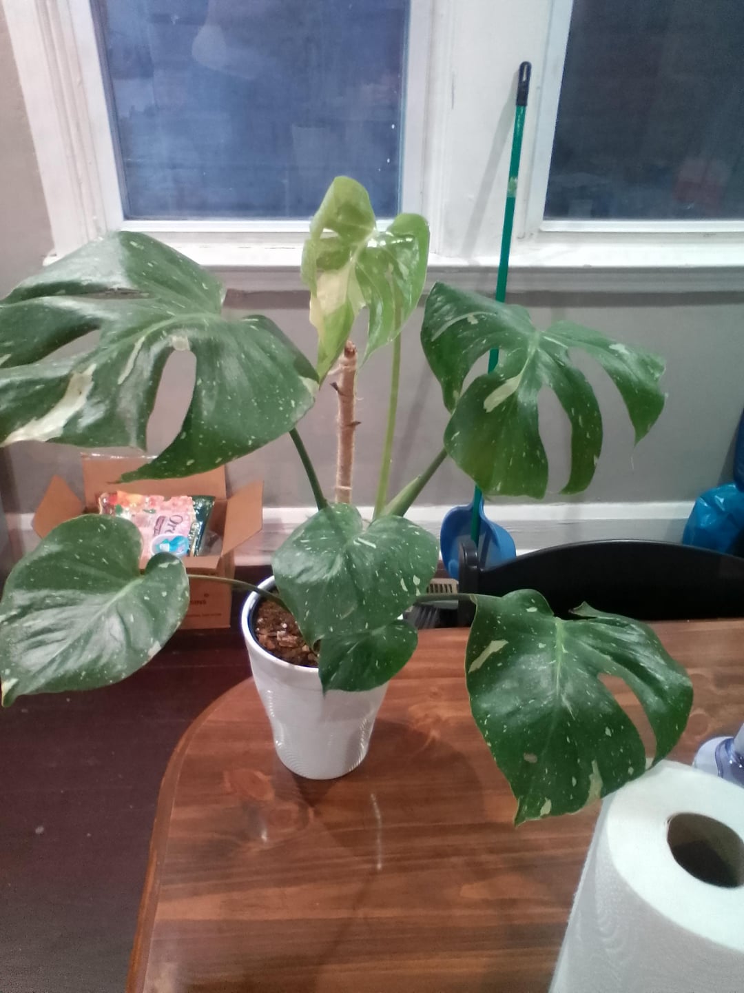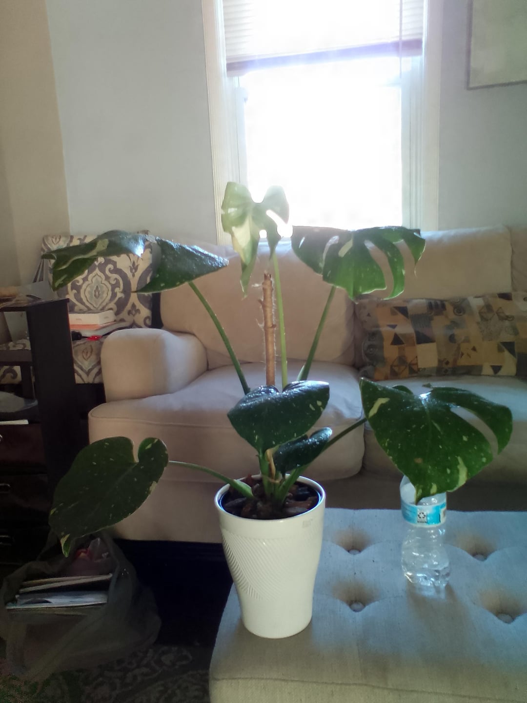 Ich habe meine Monstera gerade umgetopft, aber ich habe das Gefühl, dass ich den Stützstab nicht richtig zurückgesteckt habe, und ich habe das Gefühl, dass sie sich komisch neigt. Und sollte ich sie sofort gießen, obwohl ich alle ihre Wurzeln abgespritzt habe und die Erde nicht mehr neu war, also irgendwie feucht. Bitte beruhige mich, lol 😆