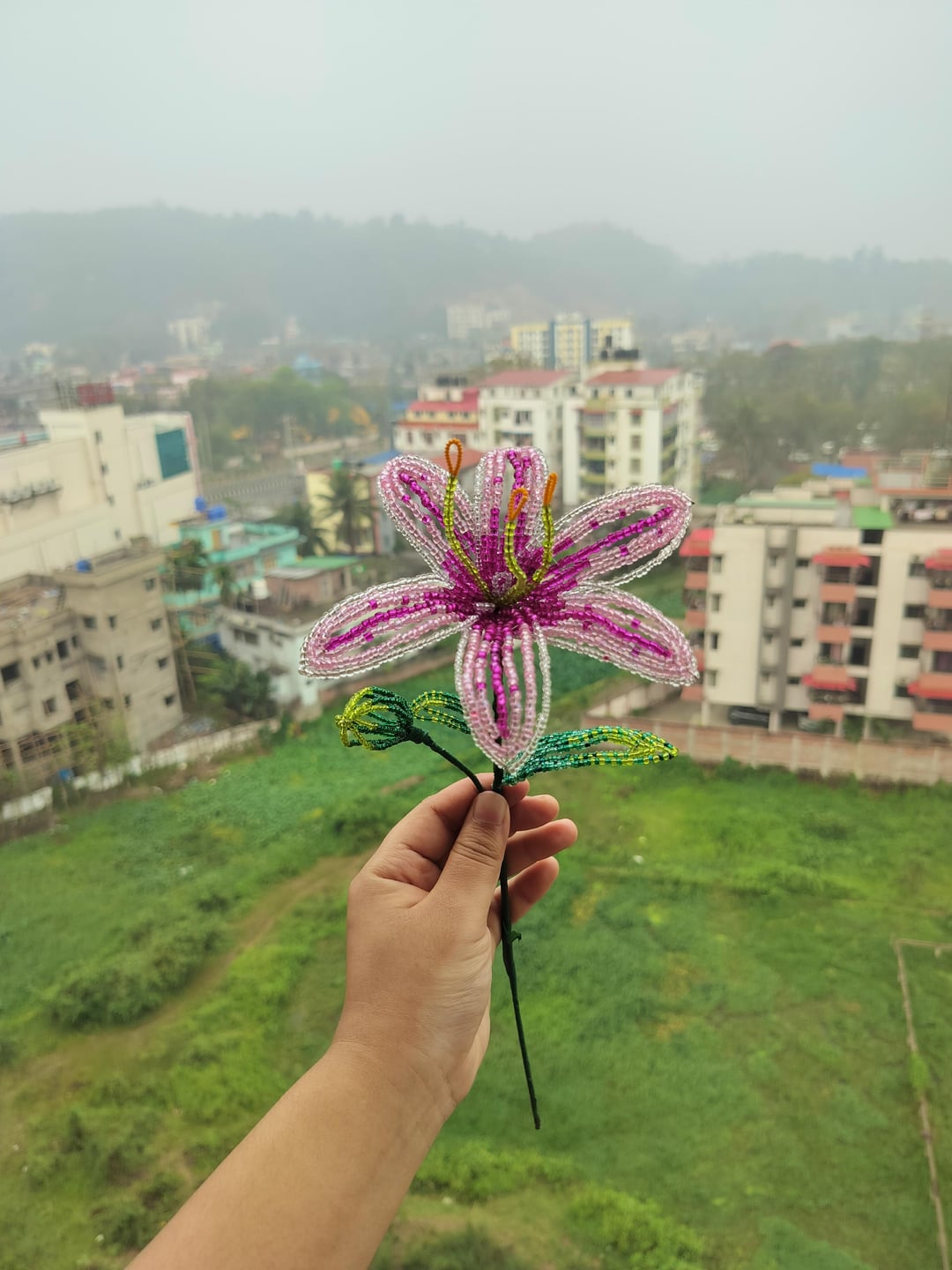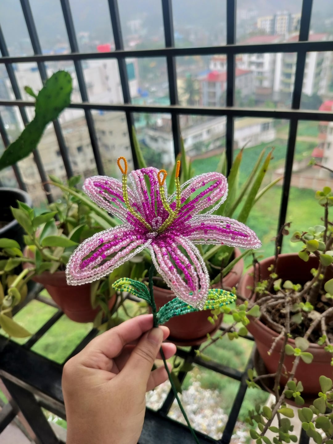 Facebook Twitter LinkedIn Pinterest Bluesky Threads Diese Lilie habe ich aus Rocaillesperlen gemacht ✨🌺 Von: nattus_dog