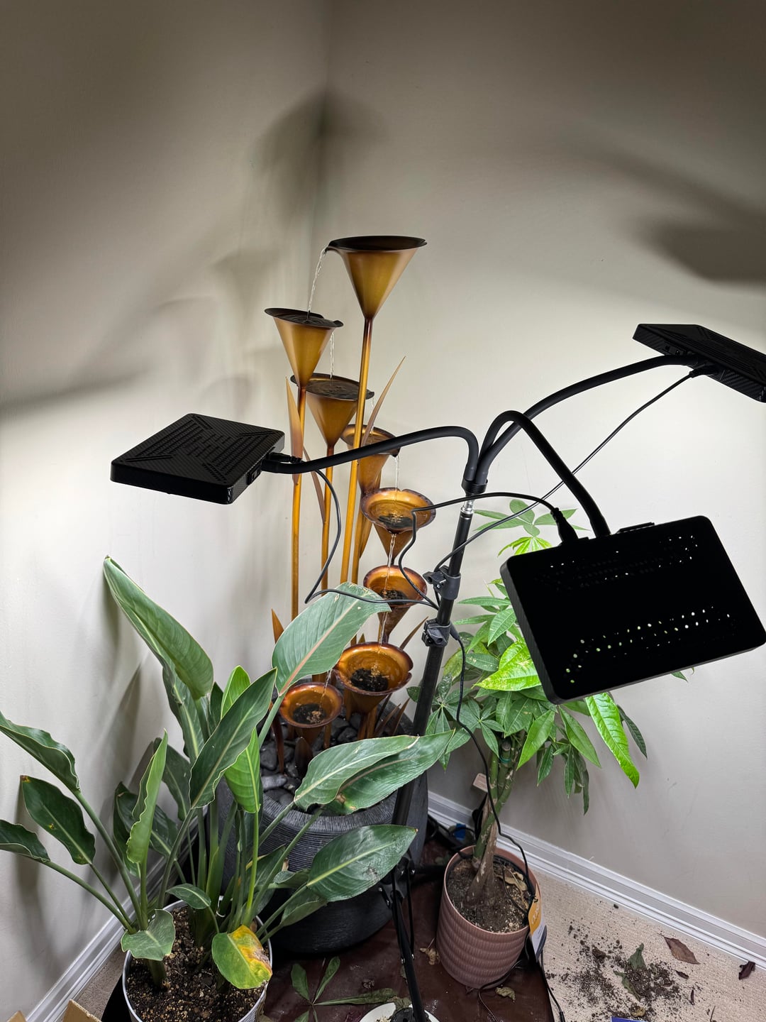 Ciao! Per me quelle lampade sono molto potenti, forse stanno scottando le foglie (mi è successo, quando ho allontanato le luci o semplicemente ho abbassato la potenza ho risolto). Nel caso non funzionasse controlla le radici 🙂