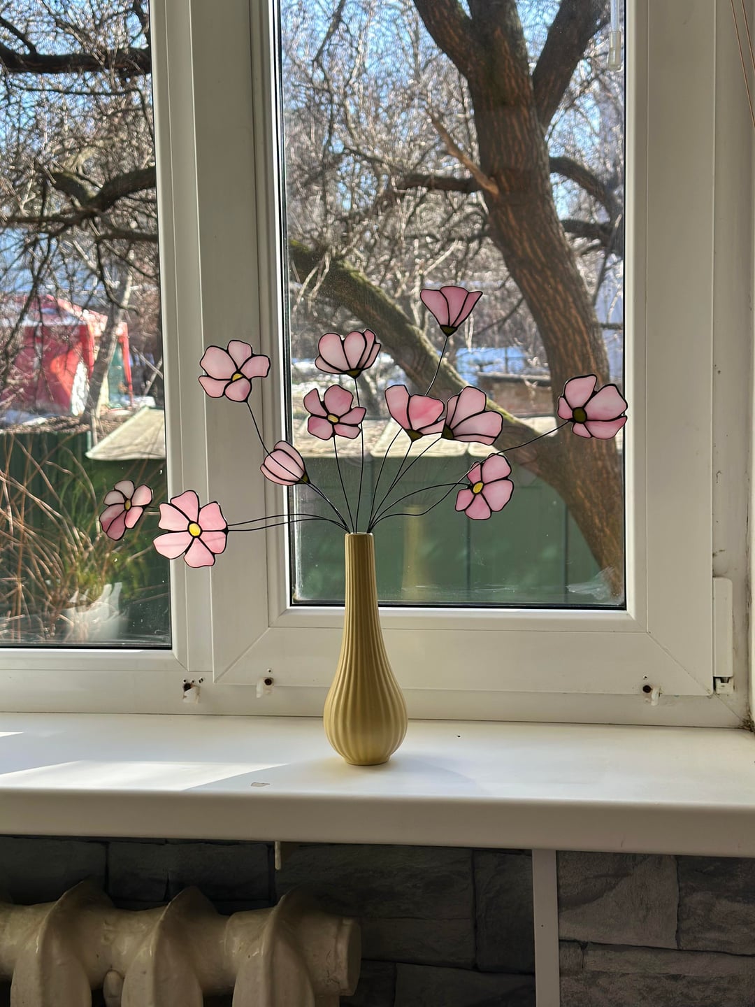 Facebook Twitter LinkedIn Pinterest Bluesky Threads Ich habe aus Buntglas einen Strauß rosa Kosmosblumen gebastelt 🌸 Von: NaSKLI