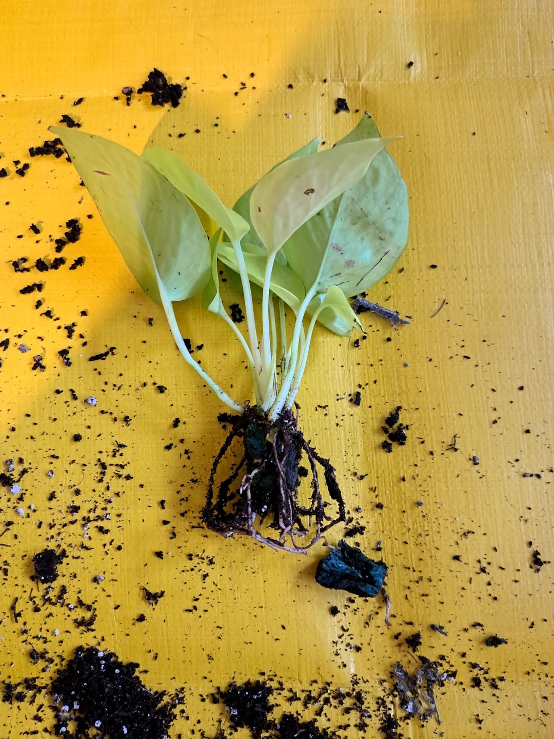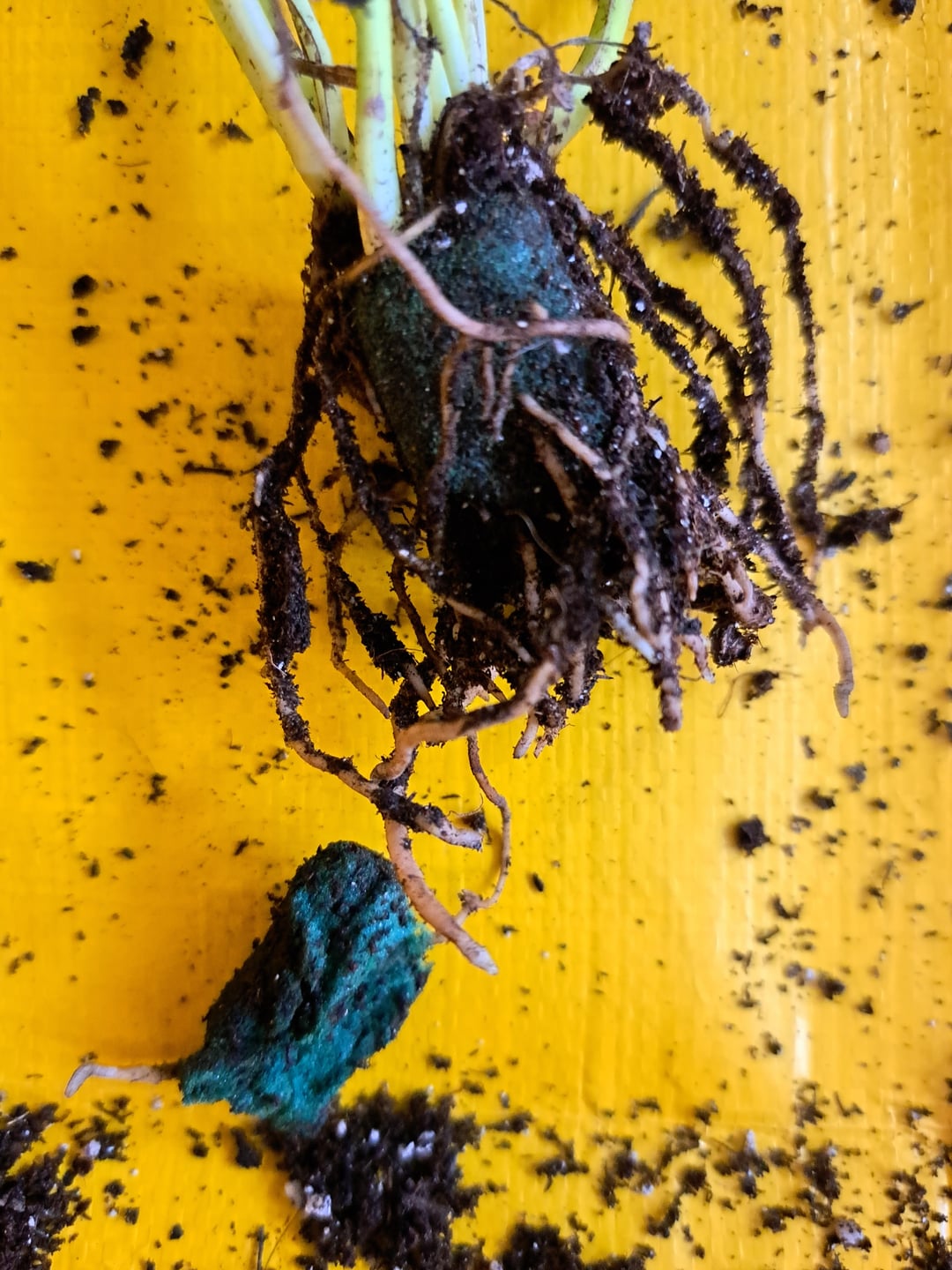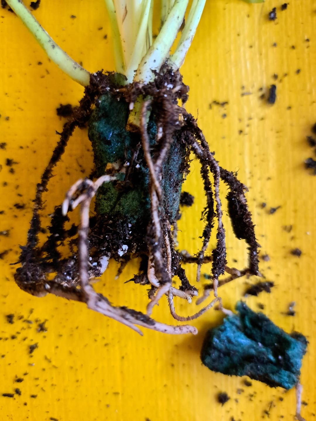Ich habe gerade diesen Philodendron gekauft, der ehrlich gesagt schon etwas kränklich aussah, und beschlossen, ihn umzutopfen. Als ich die Erde entfernte, dachte ich zunächst, es handele sich um einen Todespfropfen, und ich war schon sauer. Bei näherer Betrachtung fiel mir auf, dass es sich tatsächlich um einen Schaumstoffblock handelte. ES WURDE IN SCHAUM GEWACHSEN!? Kein Wunder, dass es nicht gut lief.