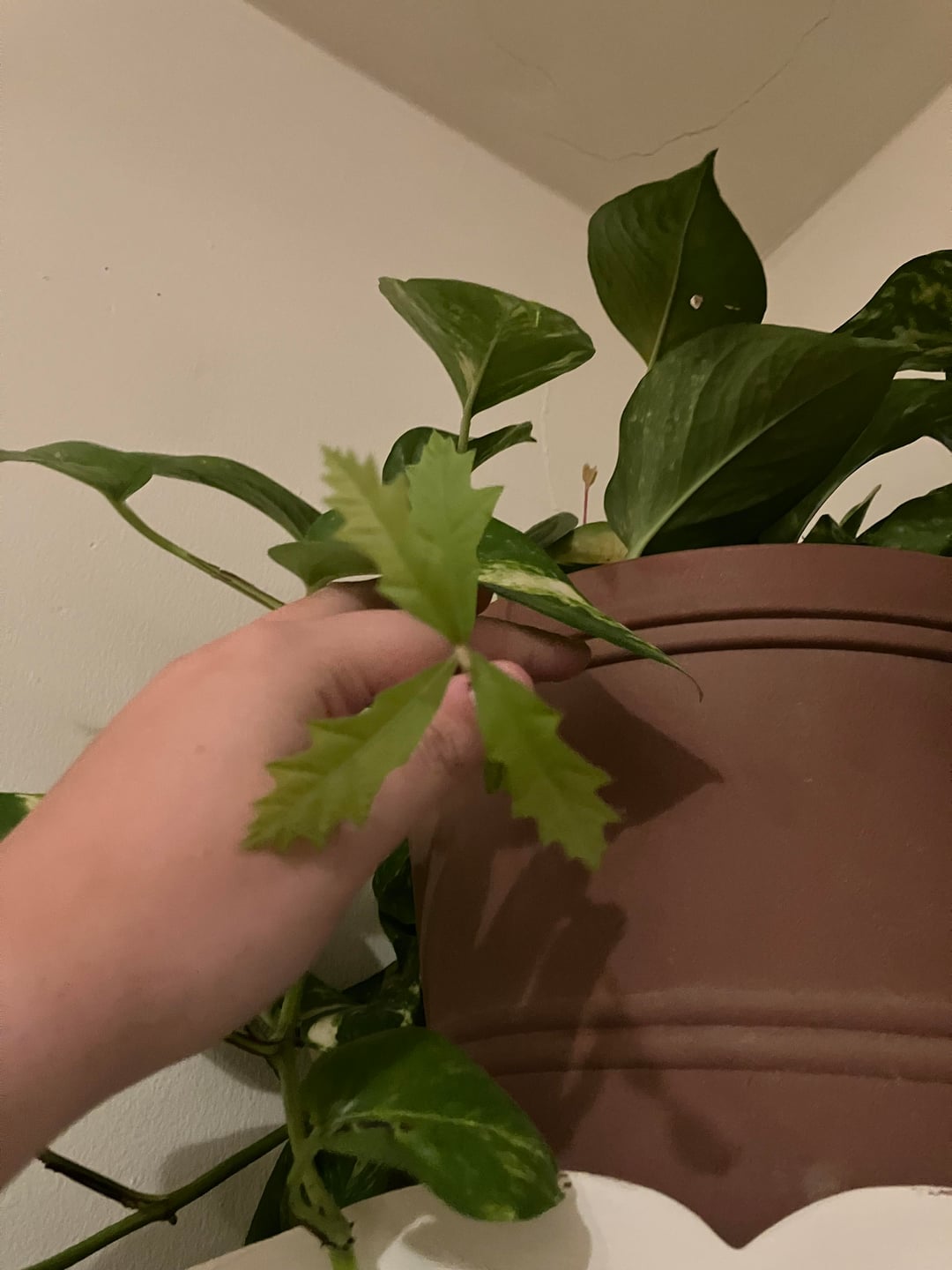 Was zum Teufel ist das? Hat es den Winter über nur im Topf geruht und treibt jetzt, da es Frühling ist, neue Triebe? Soll ich es aussortieren? Laut einem anderen Thread blühen Pothos nicht, also liegt es nicht daran, oder?
