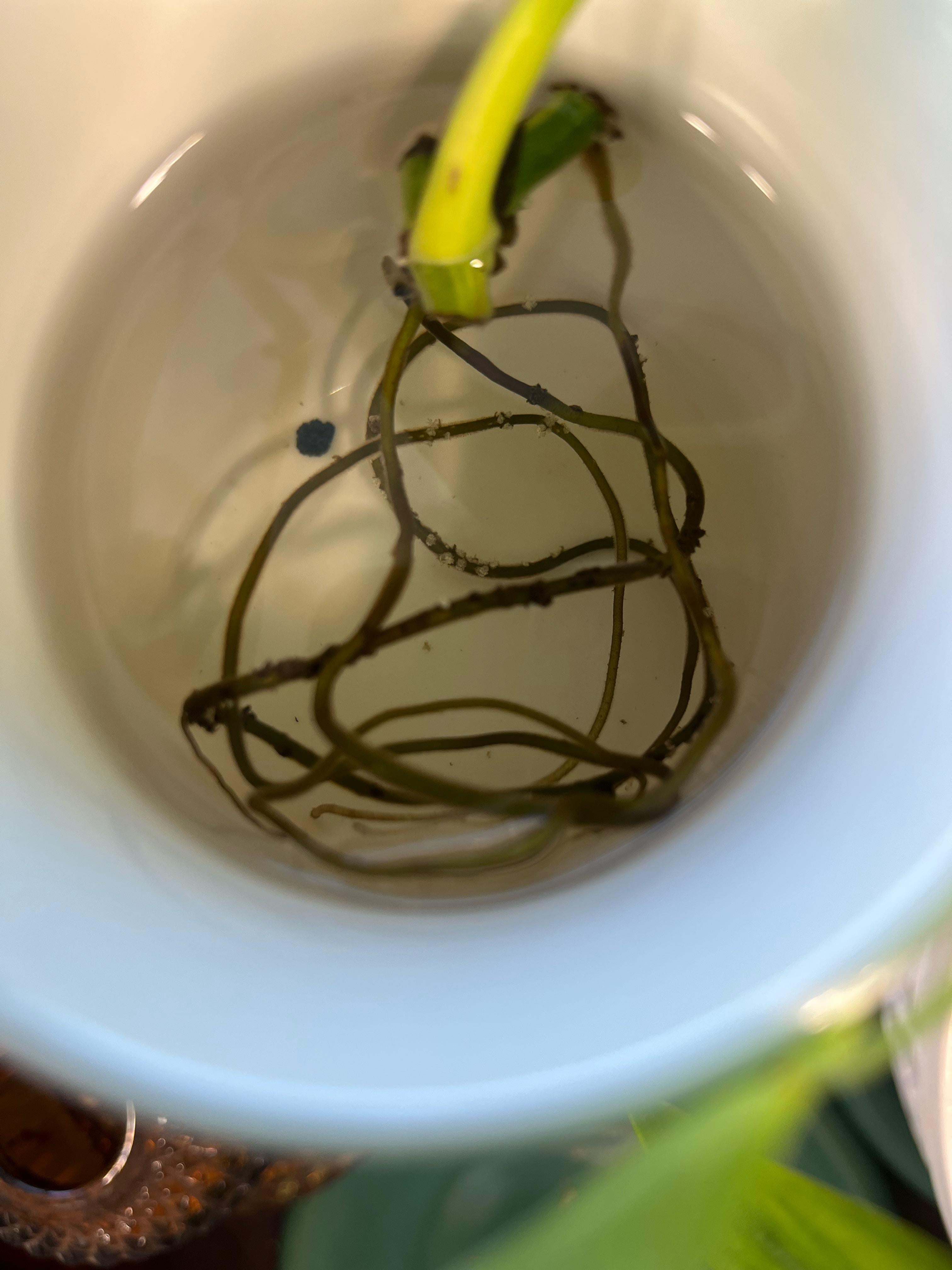 Sie sind jetzt seit ein oder zwei Monaten dort. Die Wurzeln sind immer noch gewachsen und so weiter. Ich erfrische das Wasser einmal pro Woche. Das habe ich noch nie gesehen. Weiß jemand, was es ist und ob es die Pflanze in Zukunft beeinträchtigen wird?